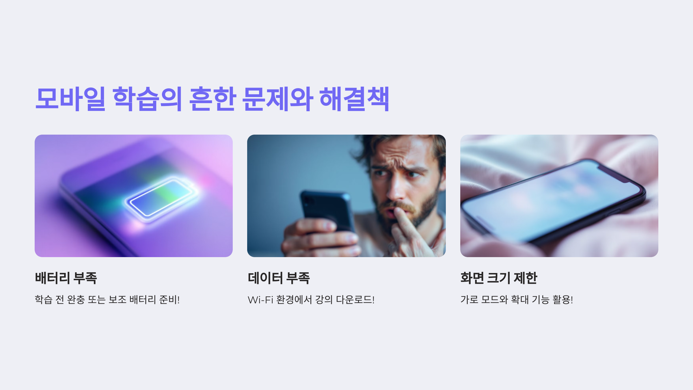 작은 화면에 최적화된 학습 자료로 집중력을 높일 수 있습니다.