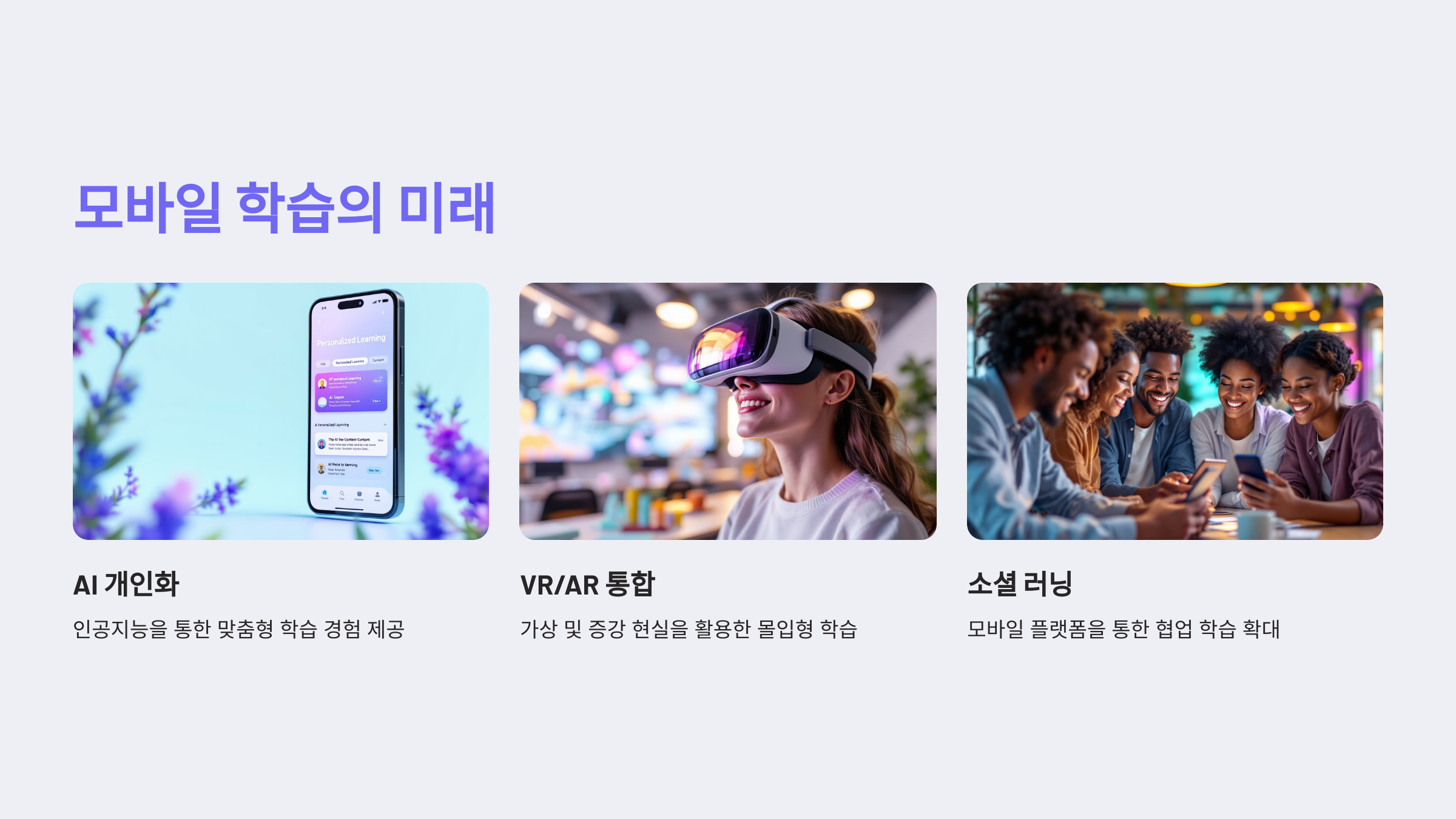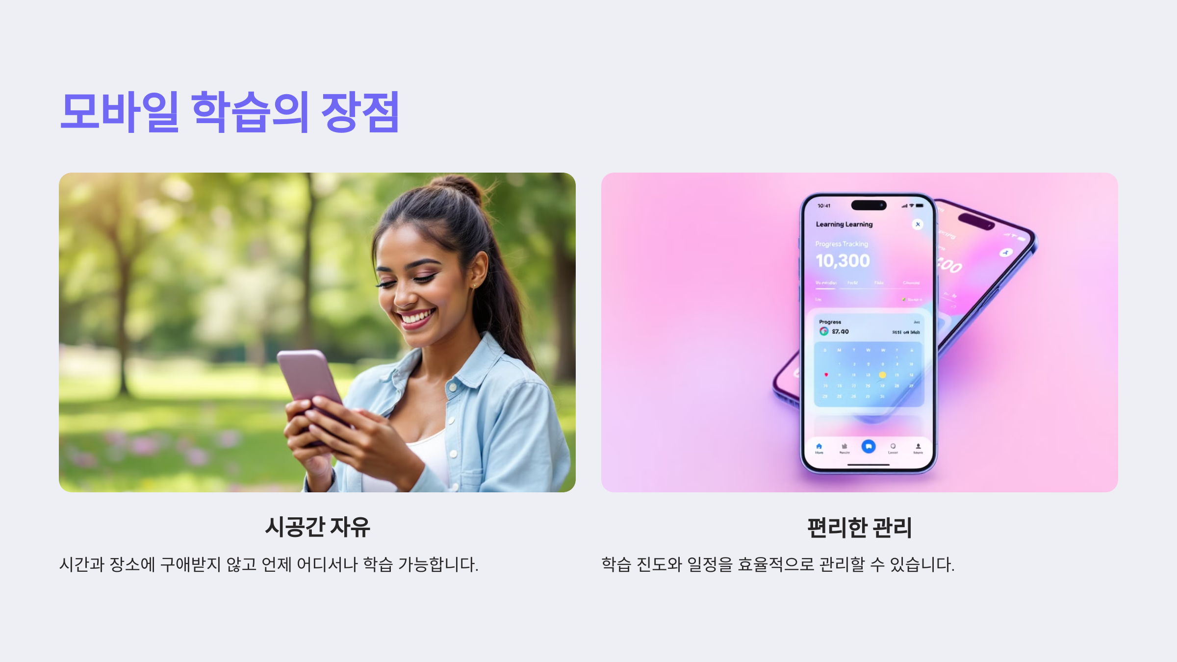A: 활용 방법에 따라 다릅니다. 모바일 학습은 반복 학습과 자율 학습에 효과적입니다.