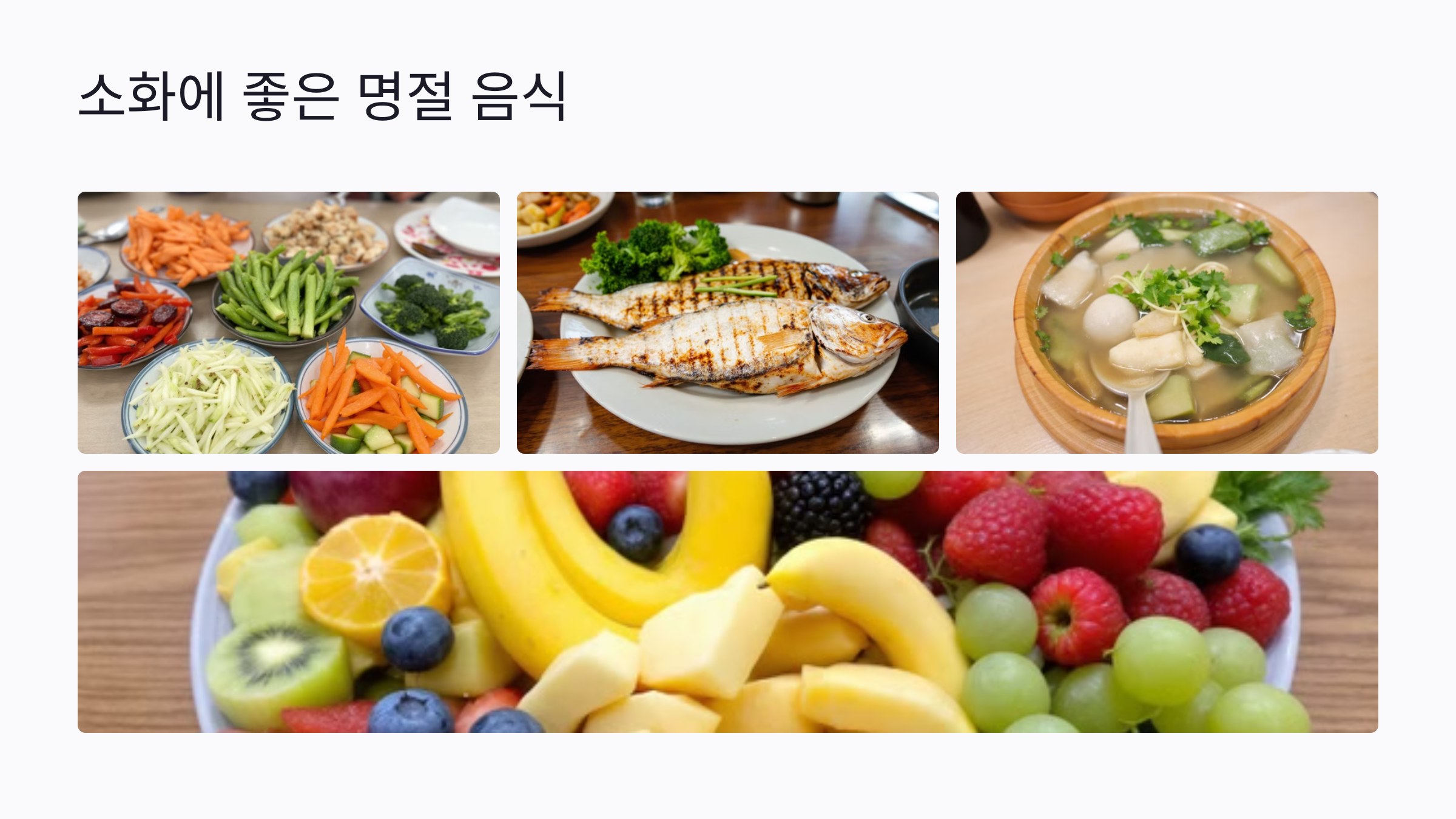A5. 나물, 샐러드, 구운 생선 등은 소화가 쉬운 음식이에요. 과식 후에는 기름진 음식을 피하고 채소 위주의 음식을 섭취해 보세요.