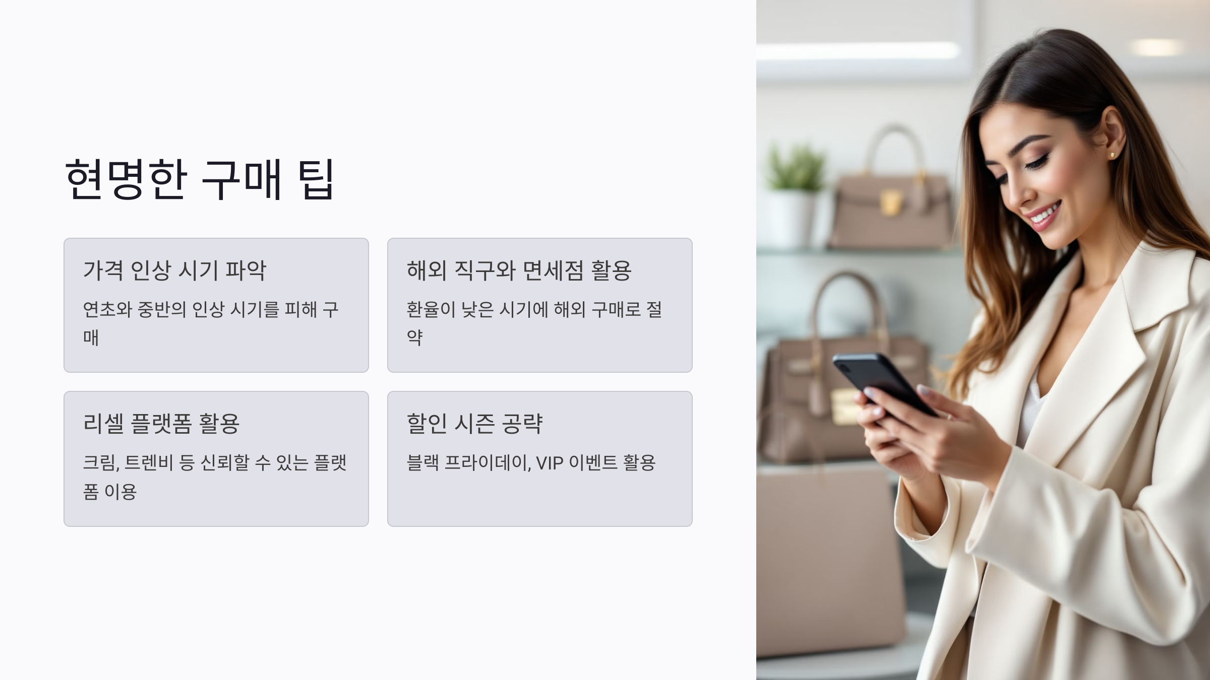 명품 가방을 똑똑하게 구매하려면 몇 가지 전략을 알고 활용하는 것이 중요해요. 아래 팁을 참고하면 알뜰하면서도 만족스러운 쇼핑을 할 수 있답니다.