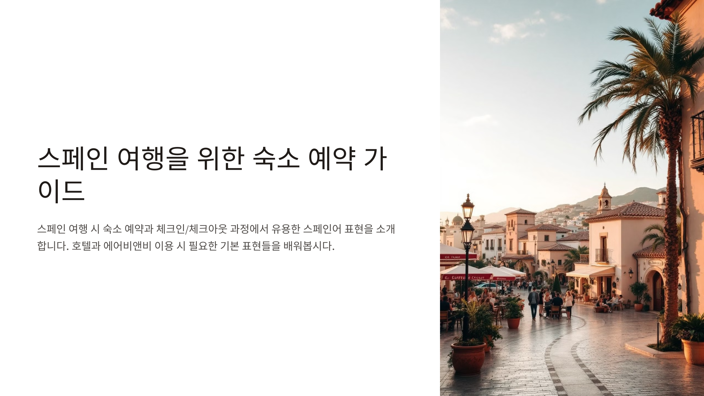 제가 생각했을 때, 스페인 여행을 앞둔 분들에게 가장 유용한 스페인어 표현은 숙소 관련된 표현이라고 봐요. 이 글에서는 호텔과 에어비앤비 두 가지 유형의 숙소에서 사용할 수 있는 필수 스페인어 표현을 정리해 드릴게요. 여행 초보자도 쉽게 사용할 수 있는 친근한 표현들을 배워볼까요?
