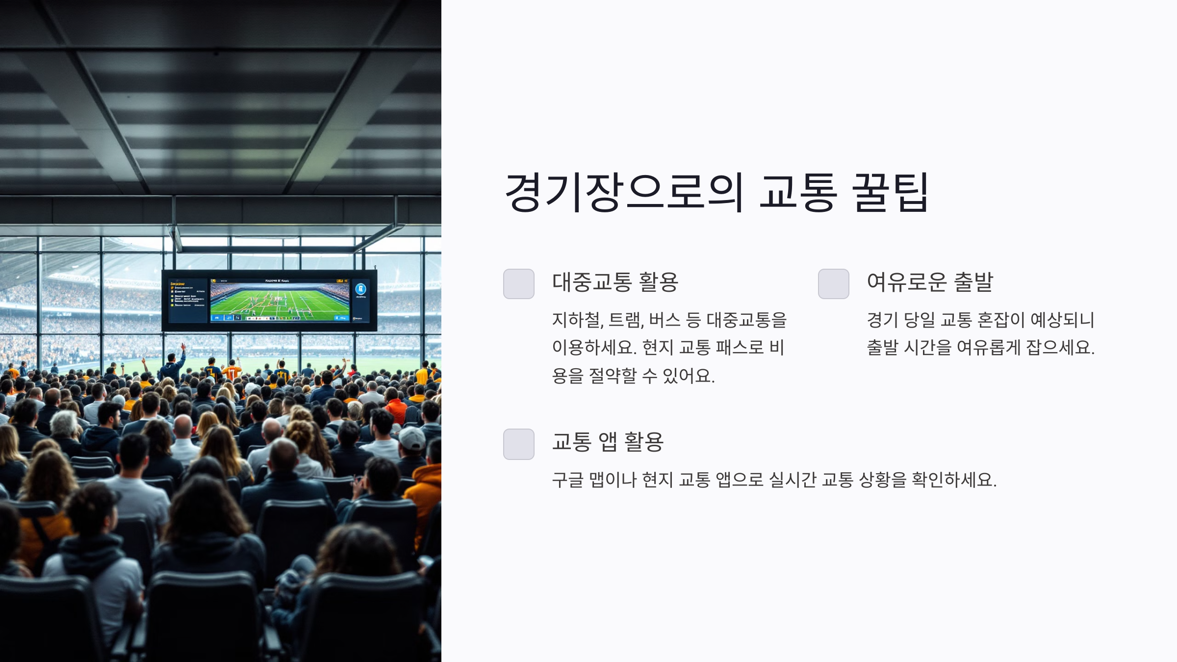 1. 경기장으로의 교통 꿀팁