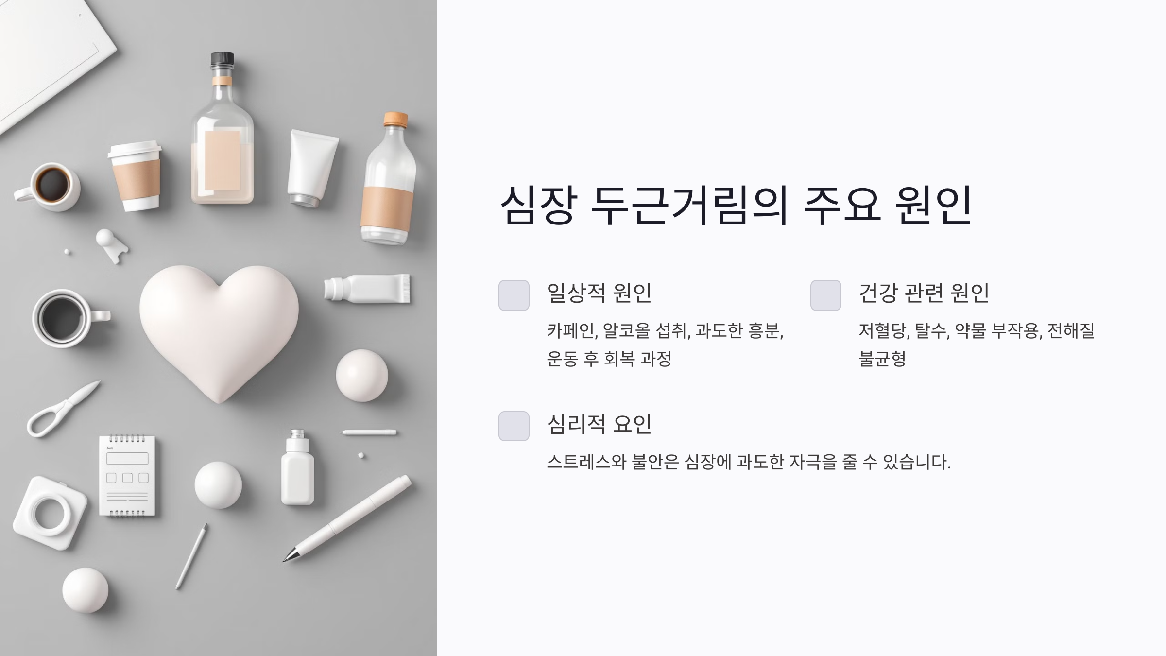 심장이 두근거리는 증상은 일시적일 수 있지만, 그 배후에 숨겨진 심각한 원인이 존재할 가능성도 있어요. 특히 우리나라에서는 스트레스와 과로로 인해 많은 사람들이 이러한 증상을 경험하고 있죠. 단순히 피로 때문이라고 넘기기에는 위험할 수도 있답니다.