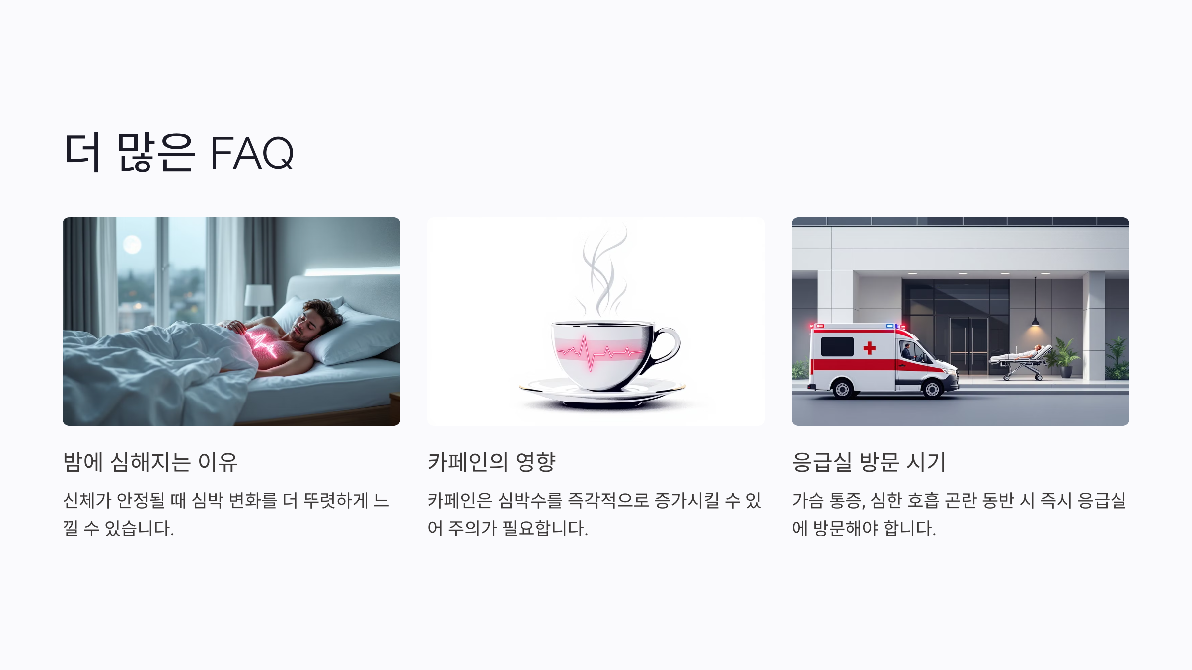 📋 목차심장 두근거림의 주요 증상심장 두근거림의 원인위험 신호와 병원 방문 타이밍두근거림 완화를 위한 즉각 대처예방을 위한 생활 습관의료적 치료 방법FAQ심장이 갑자기 빠르게 뛰거나