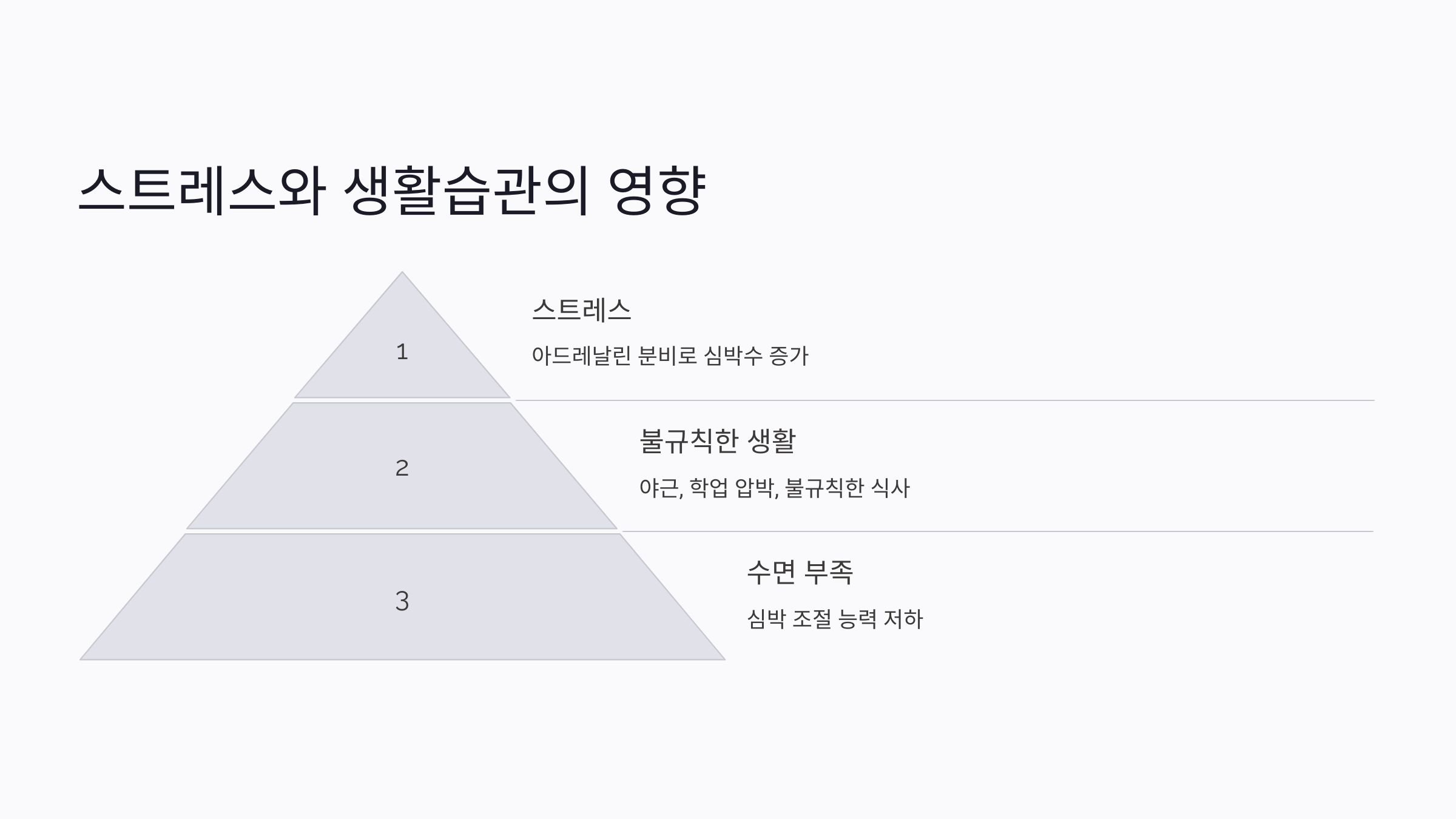 우리나라에서는 특히 잦은 야근, 학업 압박, 사회적 경쟁 등이 주요 스트레스 요인으로 작용해요. 이러한 요소들은 심장 두근거림을 악화시키는 경우가 많아요. 또한, 불규칙한 식사나 과도한 카페인 섭취는 증상을 더욱 심화시킬 수 있답니다.