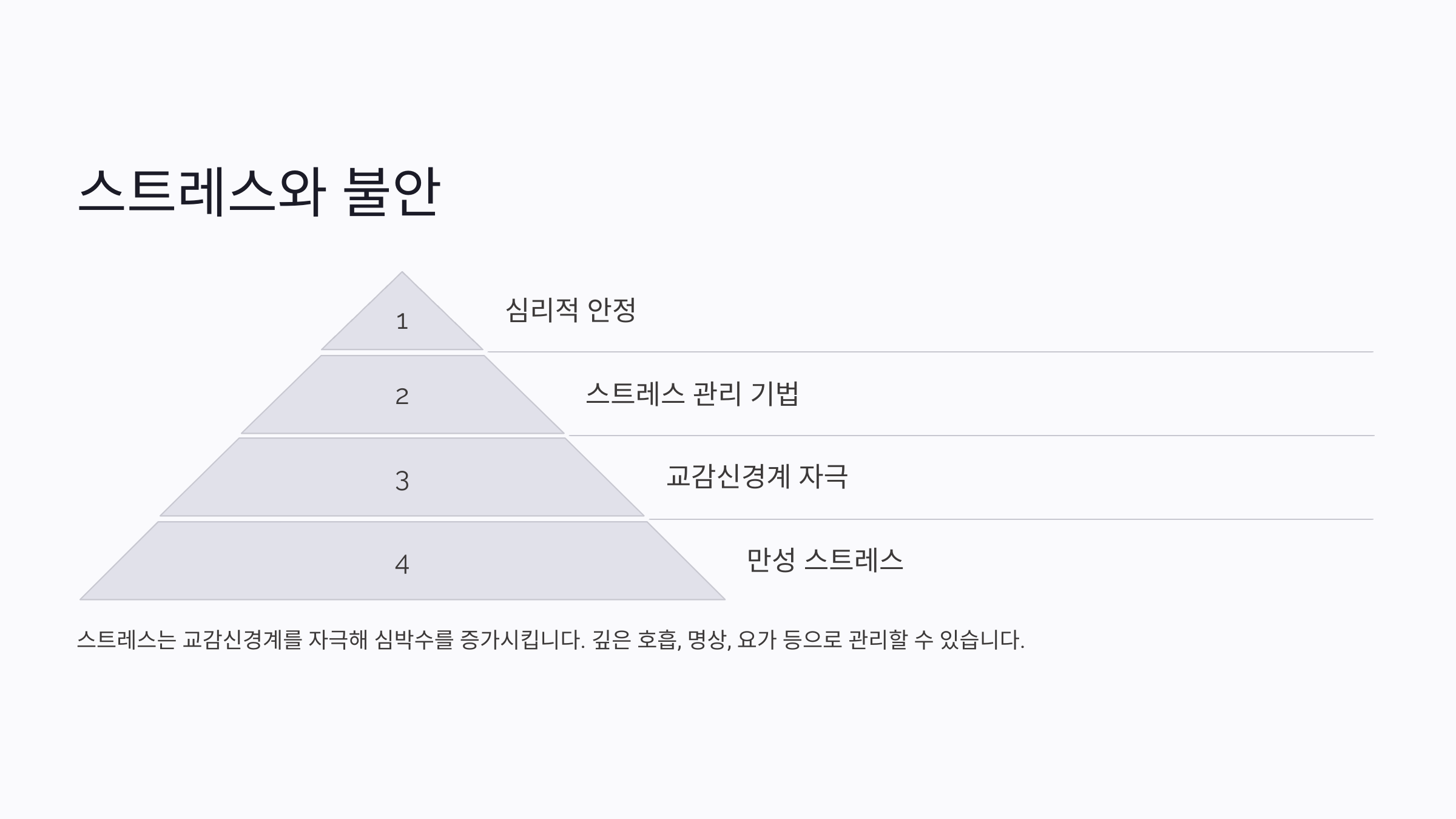 스트레스와 불안은 심장 두근거림의 흔한 원인이에요. 국내에서도 빠르게 변하는 사회 환경과 높은 경쟁률로 인해 만성적인 스트레스를 겪는 사람들이 많아요. 스트레스는 교감신경계를 자극해 심박수를 증가시키고 심장이 더 강하게 뛰는 느낌을 주죠.