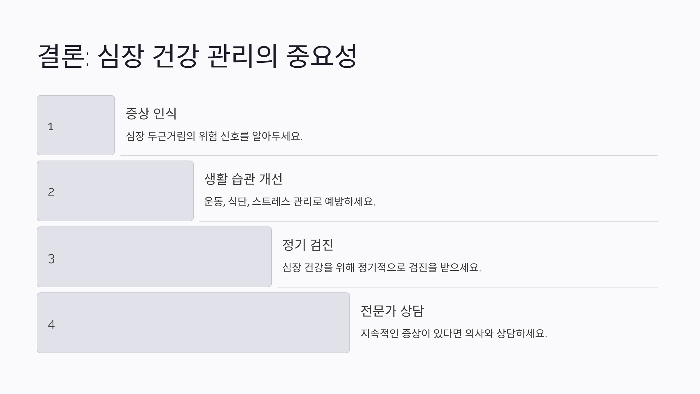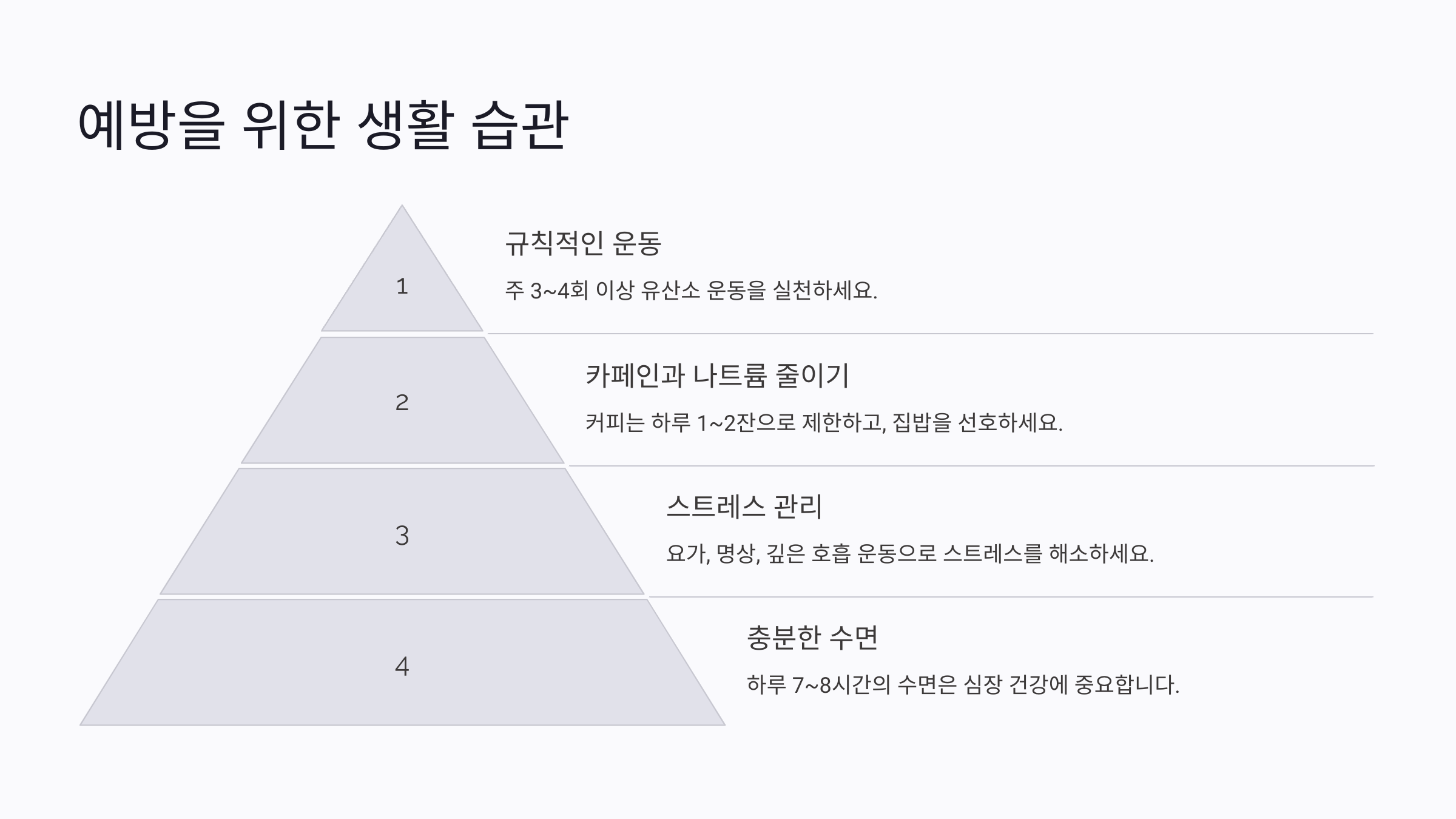 심장 두근거림을 예방하려면 생활 습관을 개선하는 것이 중요해요. 국내 상황에 맞춘 실질적인 팁을 알려드릴게요: