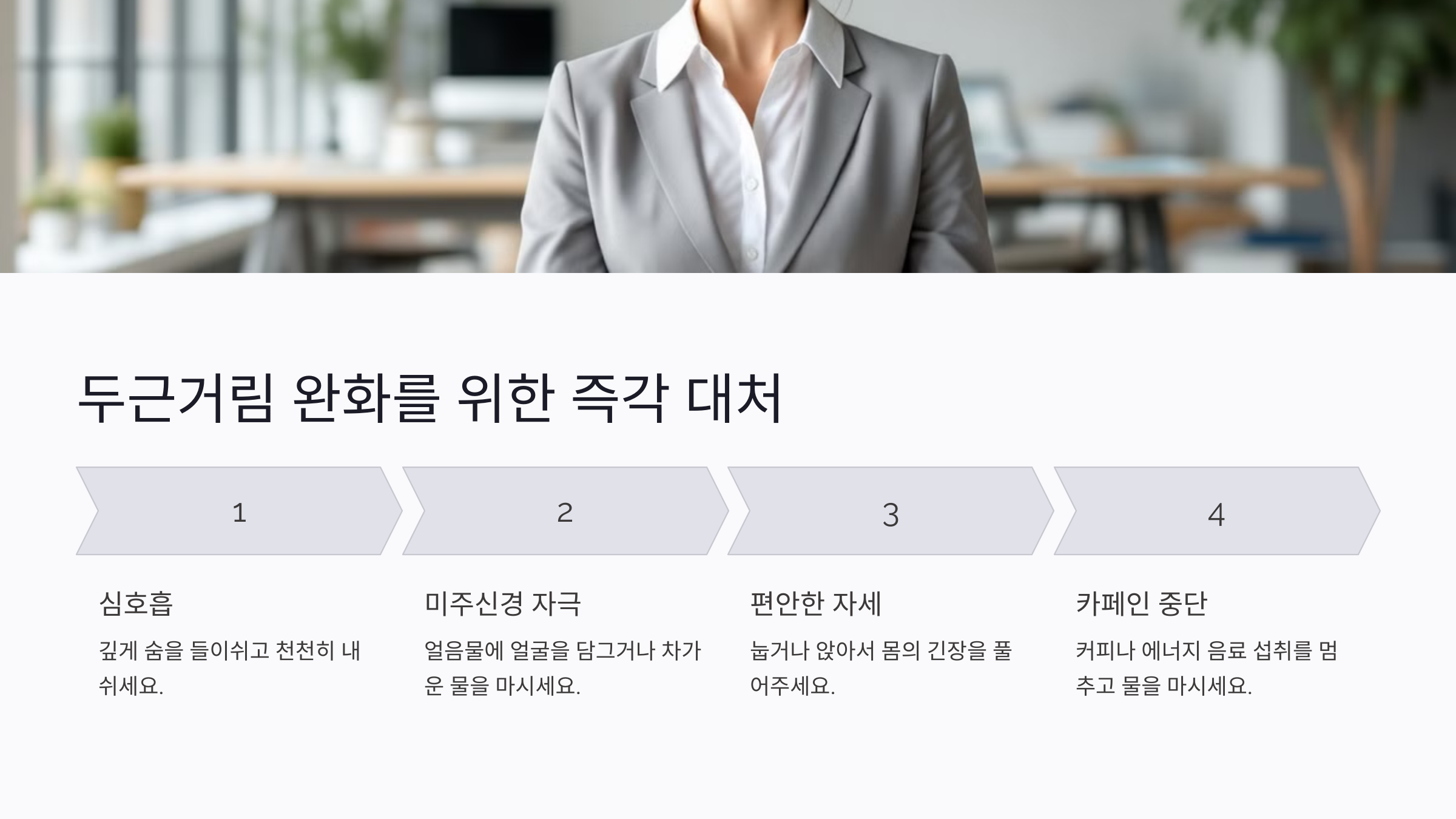 심장 두근거림이 갑자기 발생했을 때, 당황하지 않고 바로 대처하는 것이 중요해요. 간단한 방법들로 증상을 완화할 수 있답니다: