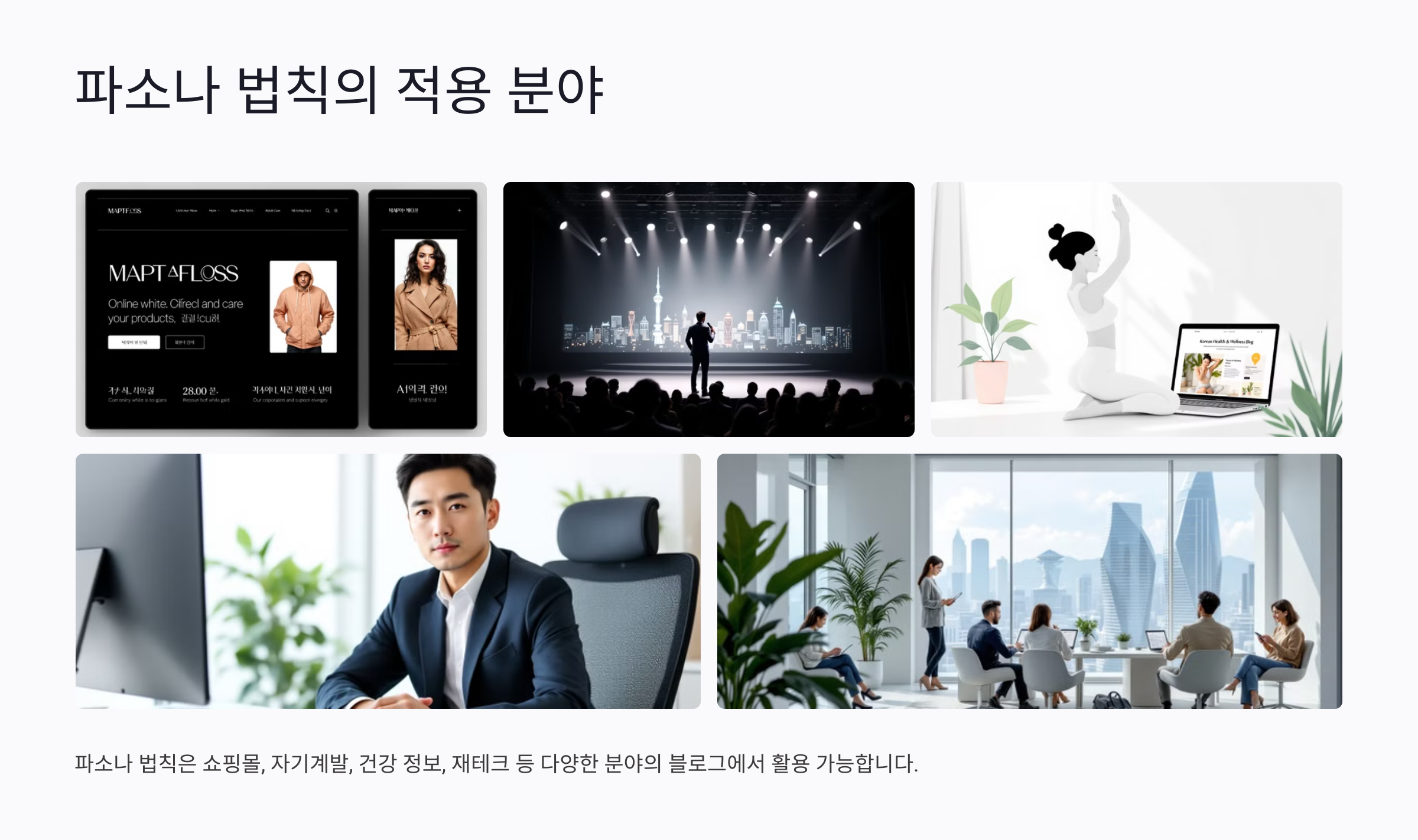 파소나 법칙은 단순히 판매에만 국한되지 않아요. 예를 들어, 자기계발 블로그, 건강 관련 콘텐츠, 재테크 정보 등에서도 효과적으로 사용 가능하답니다. 핵심은 독자의 문제를 먼저 파악하고, 그 문제를 해결할 명확한 방법을 제시하는 거예요.