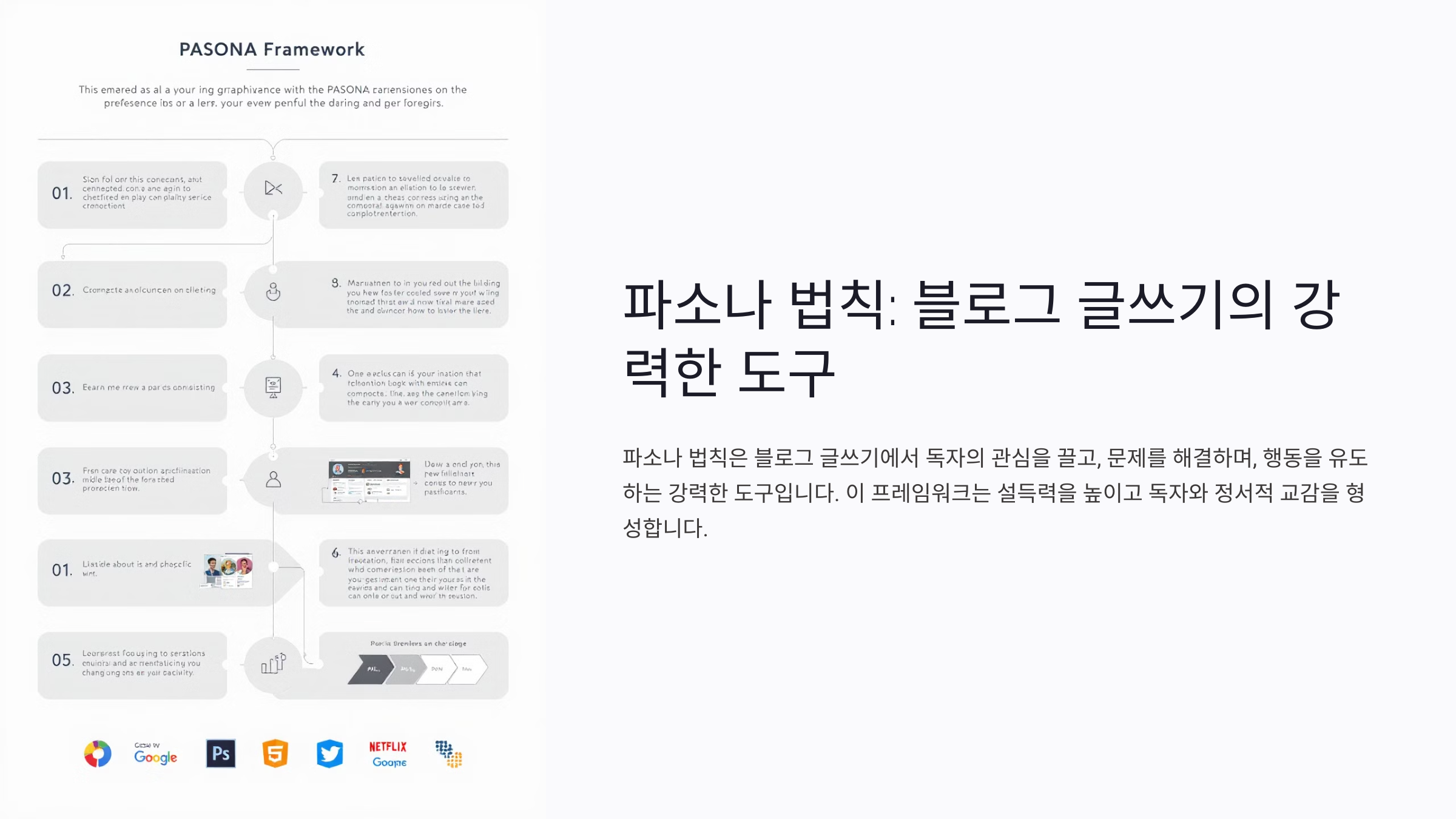 블로그 글은 단순한 정보 전달이 아니라 독자의 관심을 끌고, 문제를 해결하며, 최종적으로 행동을 유도해야 해요. 이런 구조적인 글쓰기를 돕는 강력한 도구가 바로 파소나 법칙(PASONA)이에요. 이 법칙은 설득력을 높이고, 독자와 정서적 교감을 형성하며, 구매나 신청과 같은 구체적인 행동을 유도하는 데 특화된 프레임워크예요.