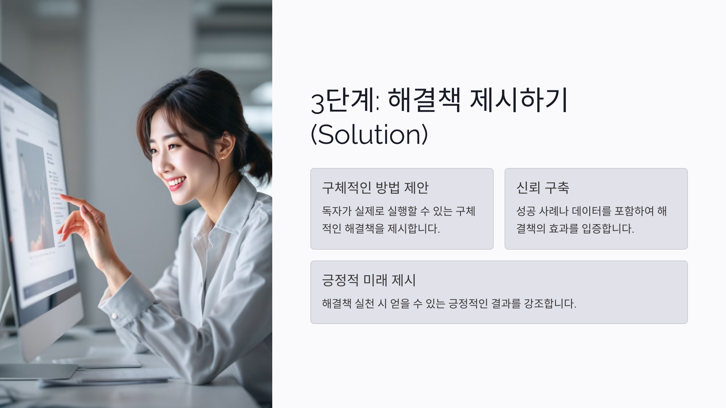 독자가 문제를 인식하고 공감했다면, 이제는 명확한 해결책을 제시할 차례예요. 이 단계에서는 독자가 실제로 실행할 수 있는 구체적인 방법을 제안해야 해요. 해결책은 독자의 상황에 꼭 맞아야 하며, 실현 가능성이 높아야 해요.