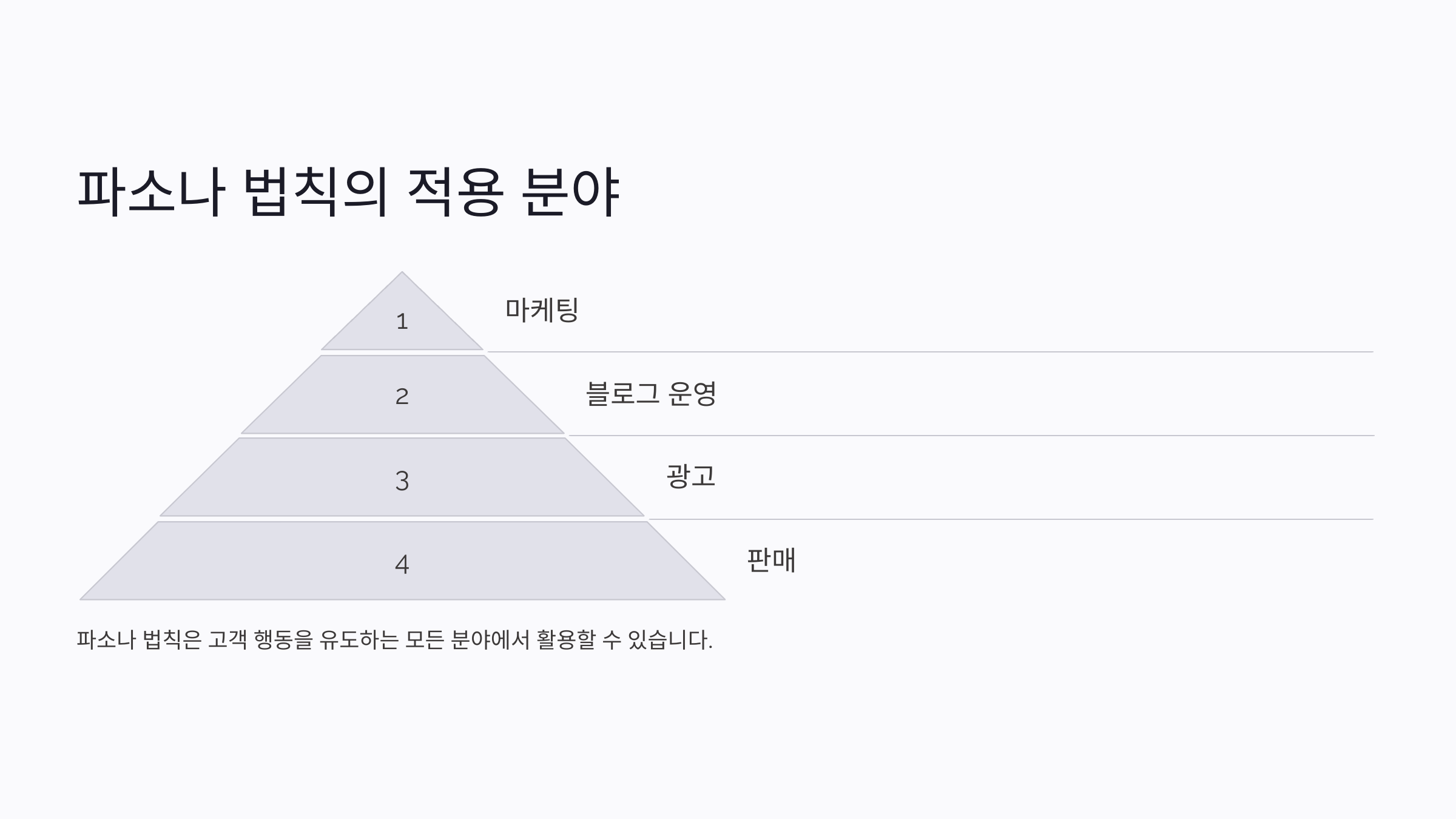 이처럼 파소나 법칙은 제품이나 서비스의 종류에 관계없이, 고객 행동을 유도하는 강력한 도구로 활용될 수 있어요. 중요한 것은 각 단계를 명확히 실행하고, 고객의 특성에 맞게 세부 전략을 조정하는 것이에요.