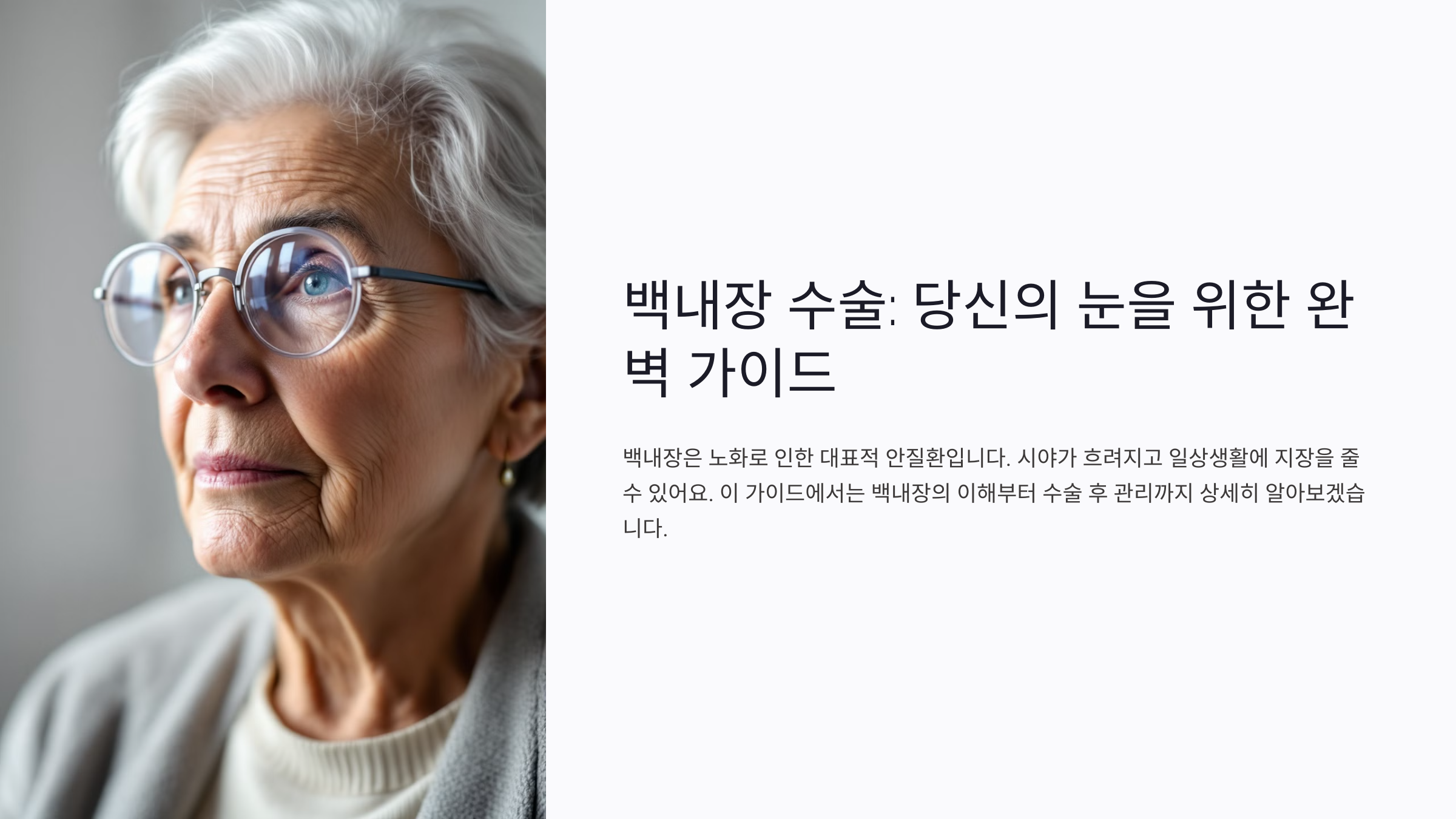백내장은 초기 단계에서는 시야 흐림 등의 증상이 미미할 수 있지만, 시간이 지날수록 증상이 악화돼 결국 수술이 필요해질 수 있어요. 다행히 백내장 수술은 안전하고 효과적인 치료법으로 잘 알려져 있답니다. 국내에서는 매년 수십만 건의 수술이 진행되고 있으며, 성공률이 매우 높은 편이에요. 하지만 성공적인 수술 결과를 위해서는 올바른 병원 선택과 철저한 관리가 중요하답니다.