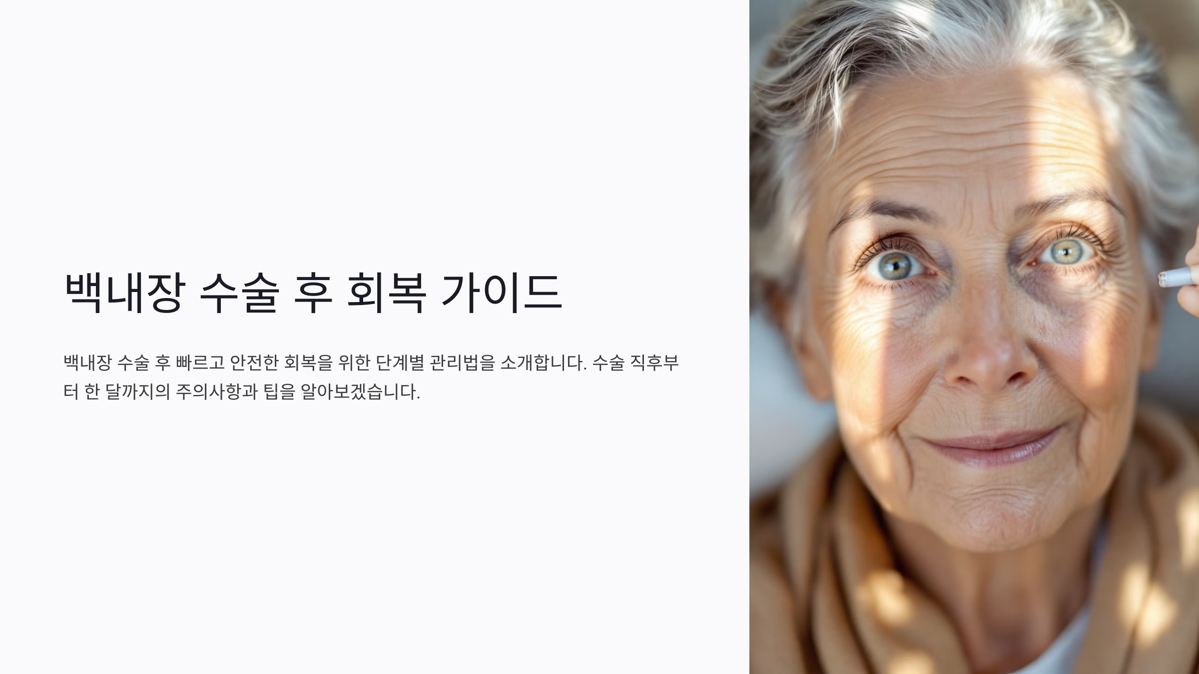 백내장 수술은 비교적 간단하고 성공률이 높은 수술로 알려져 있어요. 하지만 수술 후 적절한 관리가 이루어지지 않으면 회복 속도가 느려지거나 부작용이 생길 수 있답니다. 수술 후에는 눈에 대한 세심한 관리가 필요하며, 단계별로 적절한 주의사항을 지키는 것이 중요해요. 오늘은 수술 직후부터 한 달까지 빠르고 안전하게 회복하는 6가지 관리법을 단계별로 정리해 볼게요.