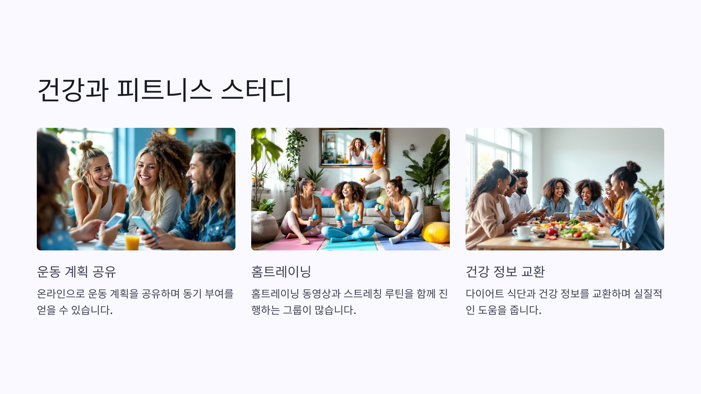 온라인으로 운동 계획을 공유하며 동기 부여를 얻을 수 있습니다.