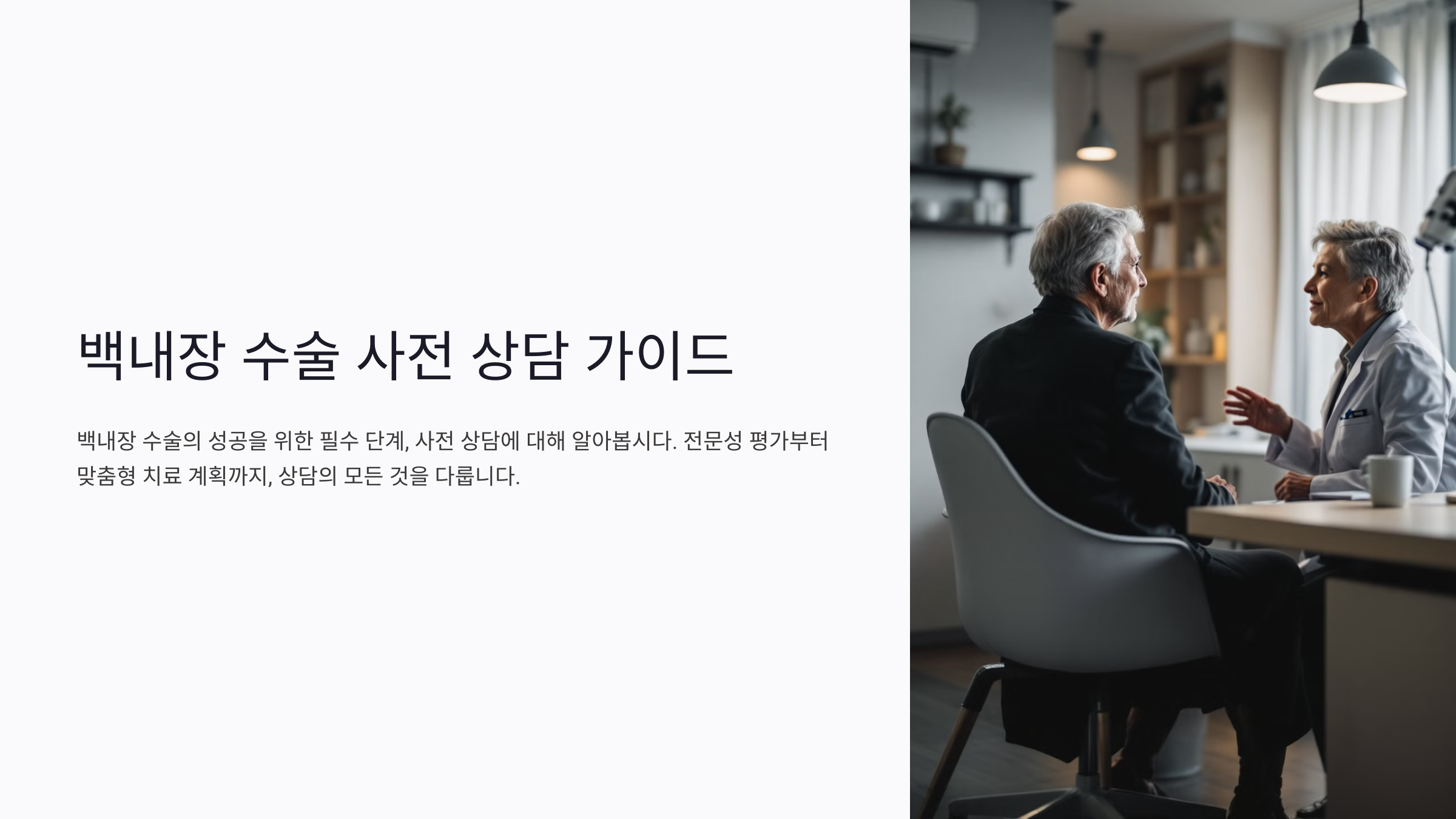 백내장 수술은 시력을 회복하고 삶의 질을 높이는 데 매우 중요한 절차예요. 그러나 성공적인 결과를 얻기 위해서는 사전 상담이 필수랍니다. 상담을 통해 병원의 전문성과 신뢰도를 평가하고, 본인의 눈 상태에 맞는 최적의 수술 계획을 세울 수 있어요. 오늘은 국내 현실에 맞춘 백내장 수술 사전 상담 노하우를 단계별로 알아볼게요.
