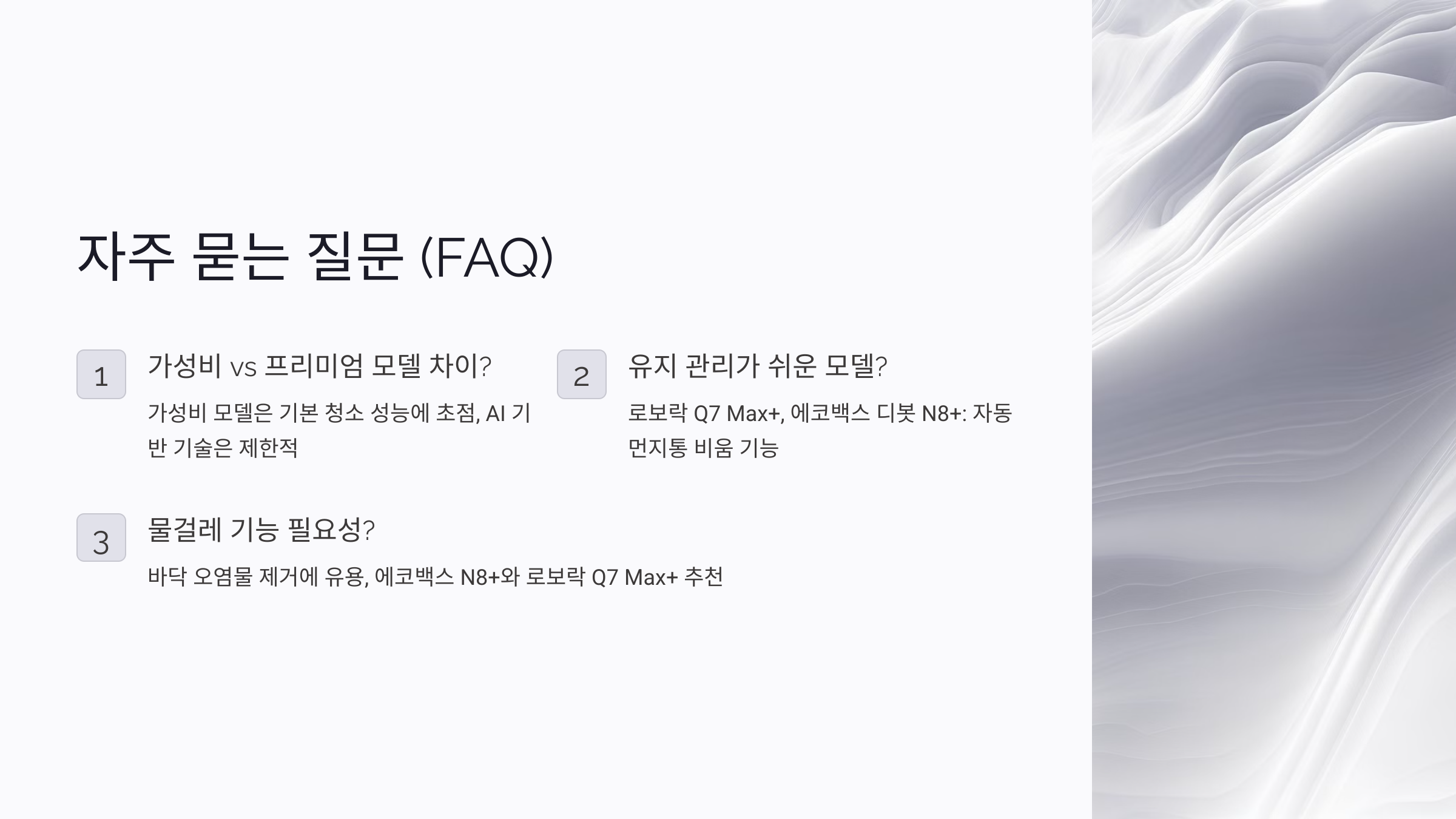 Q1. 가성비 로봇청소기와 프리미엄 모델의 차이는 무엇인가요?
