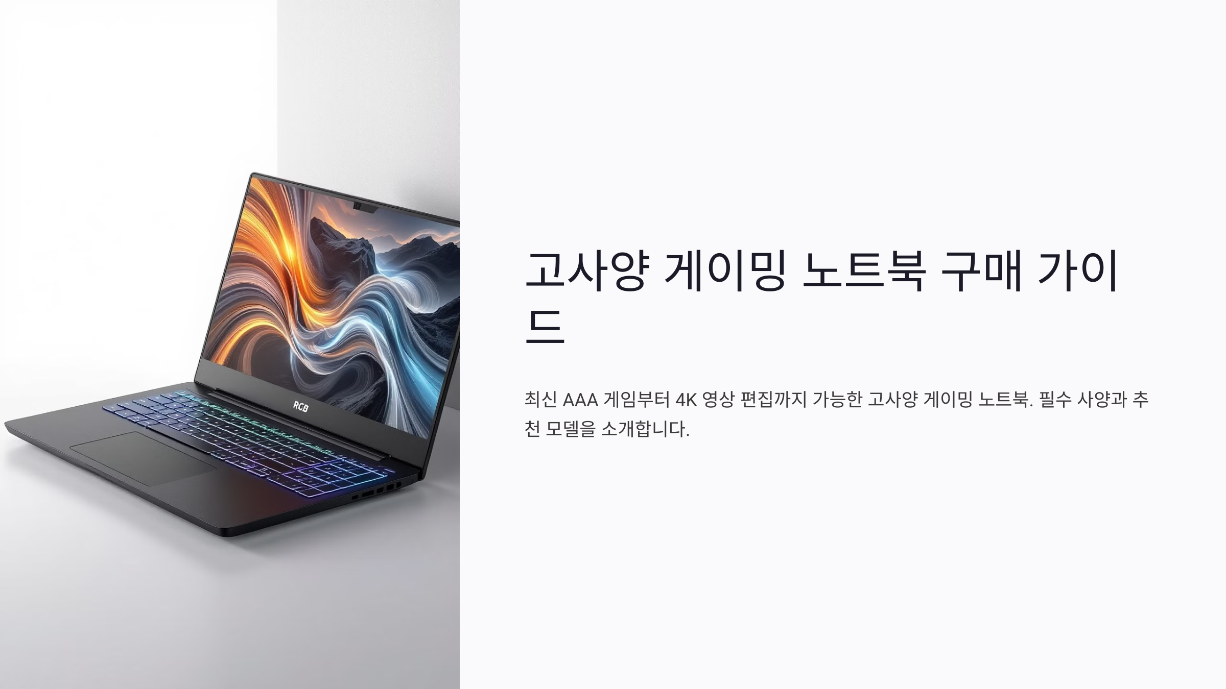 고사양 게이밍 노트북은 뛰어난 성능과 혁신적인 기술로 최신 AAA 게임부터 4K 영상 편집까지 모두 커버할 수 있는 강력한 장비예요. 하지만 어떤 사양을 선택해야 할지 고민될 때가 많죠. 이 가이드에서는 고사양 게이밍 노트북을 구매할 때 꼭 알아야 할 필수 사양과 주요 추천 모델을 소개할게요!