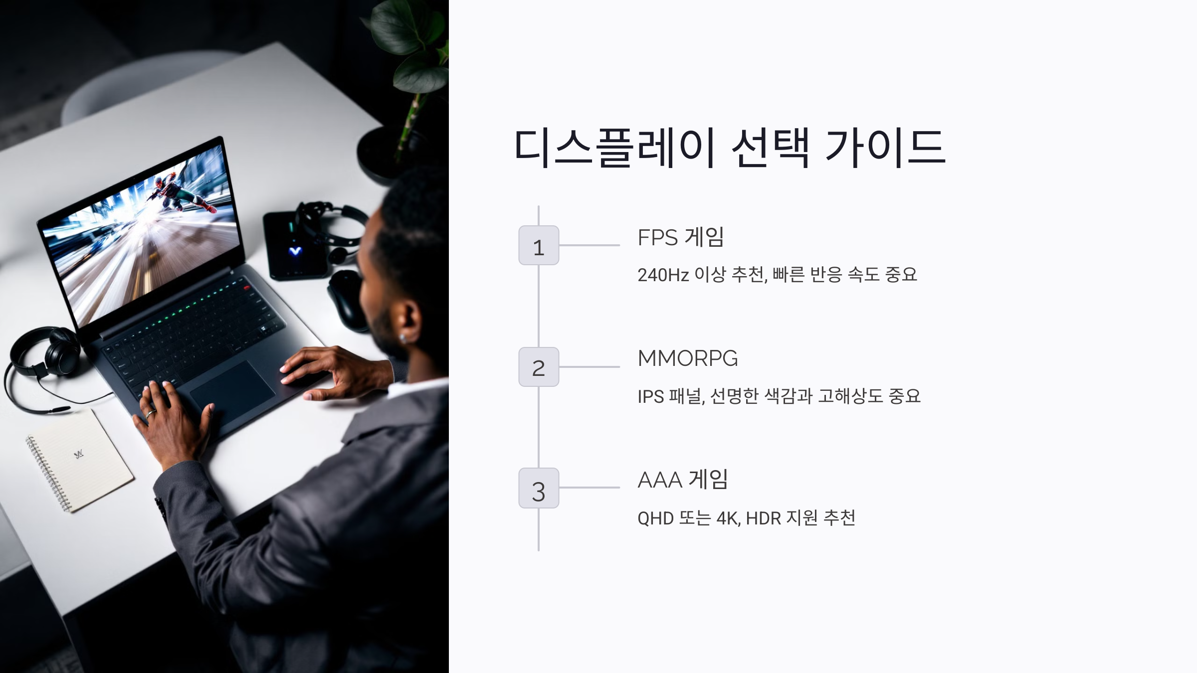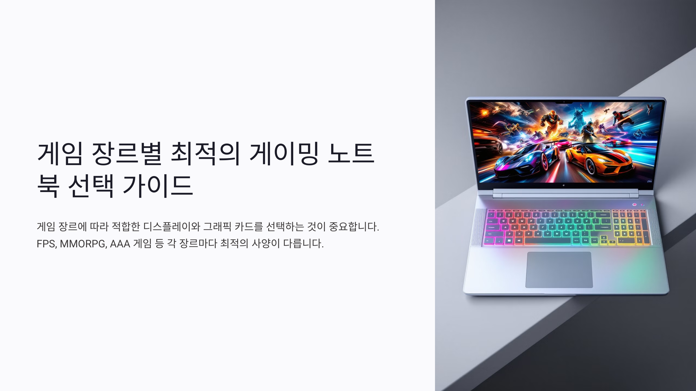 게이밍 노트북을 구매할 때 게임의 장르에 따라 적합한 디스플레이와 그래픽 카드를 선택하는 것이 중요해요. FPS, MMORPG, AAA 게임 등 각 장르마다 최적의 디스플레이 사양과 GPU가 다르기 때문이에요. 여기서는 게임별로 추천되는 디스플레이와 그래픽 카드, 그리고 최고의 성능을 제공하는 노트북을 소개할게요!