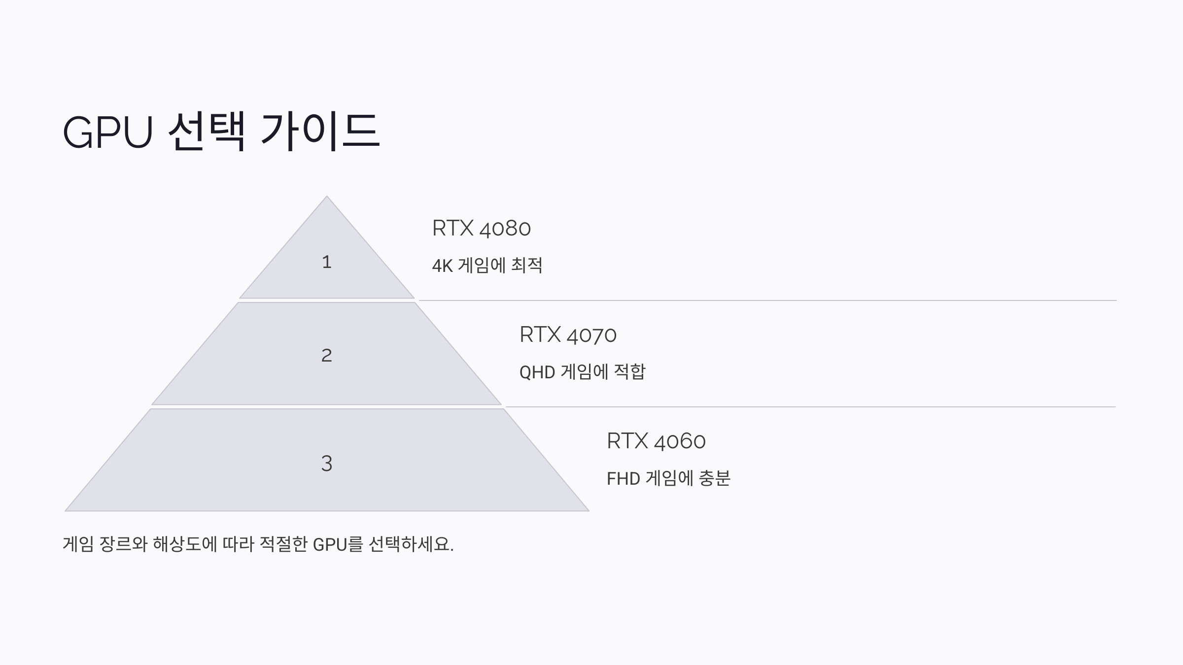 A2. RTX 4060은 FHD 해상도에서 AAA 게임을 원활히 실행할 수 있어요. 하지만 QHD 또는 4K 환경에서 최고 품질로 즐기려면 RTX 4070 이상이 더 적합해요.