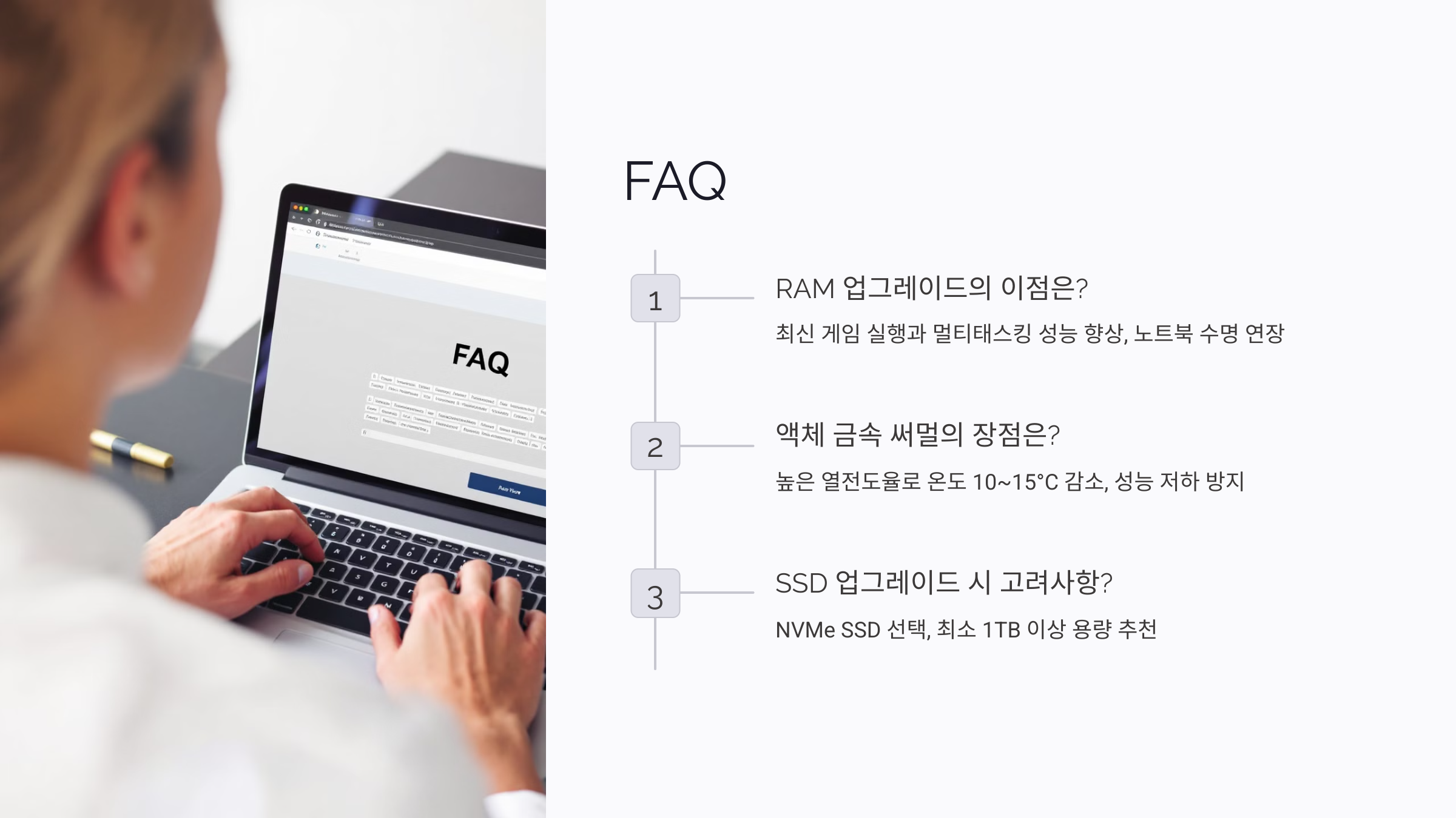 A1. RAM 업그레이드는 최신 게임을 더 부드럽게 실행하고, 멀티태스킹 작업을 원활하게 수행하기 위해 중요해요. 업그레이드 가능하면 노트북을 오래 사용할 수 있어요.