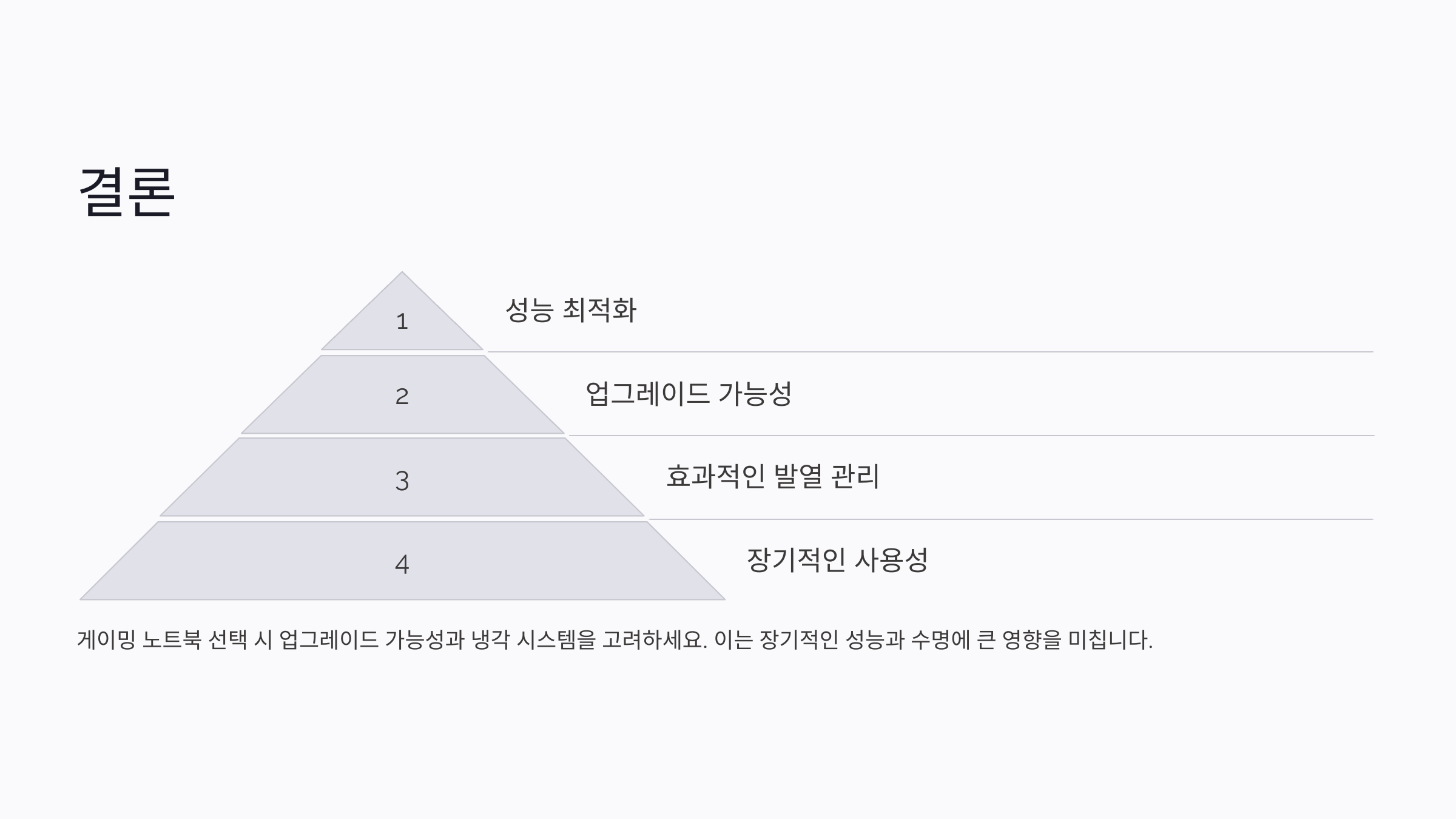A4. 냉각 성능이 부족하면 장시간 게임 시 성능 저하와 부품 손상이 발생할 수 있어요. 발열 관리를 잘하는 노트북은 게임 환경을 안정적으로 유지해줍니다.