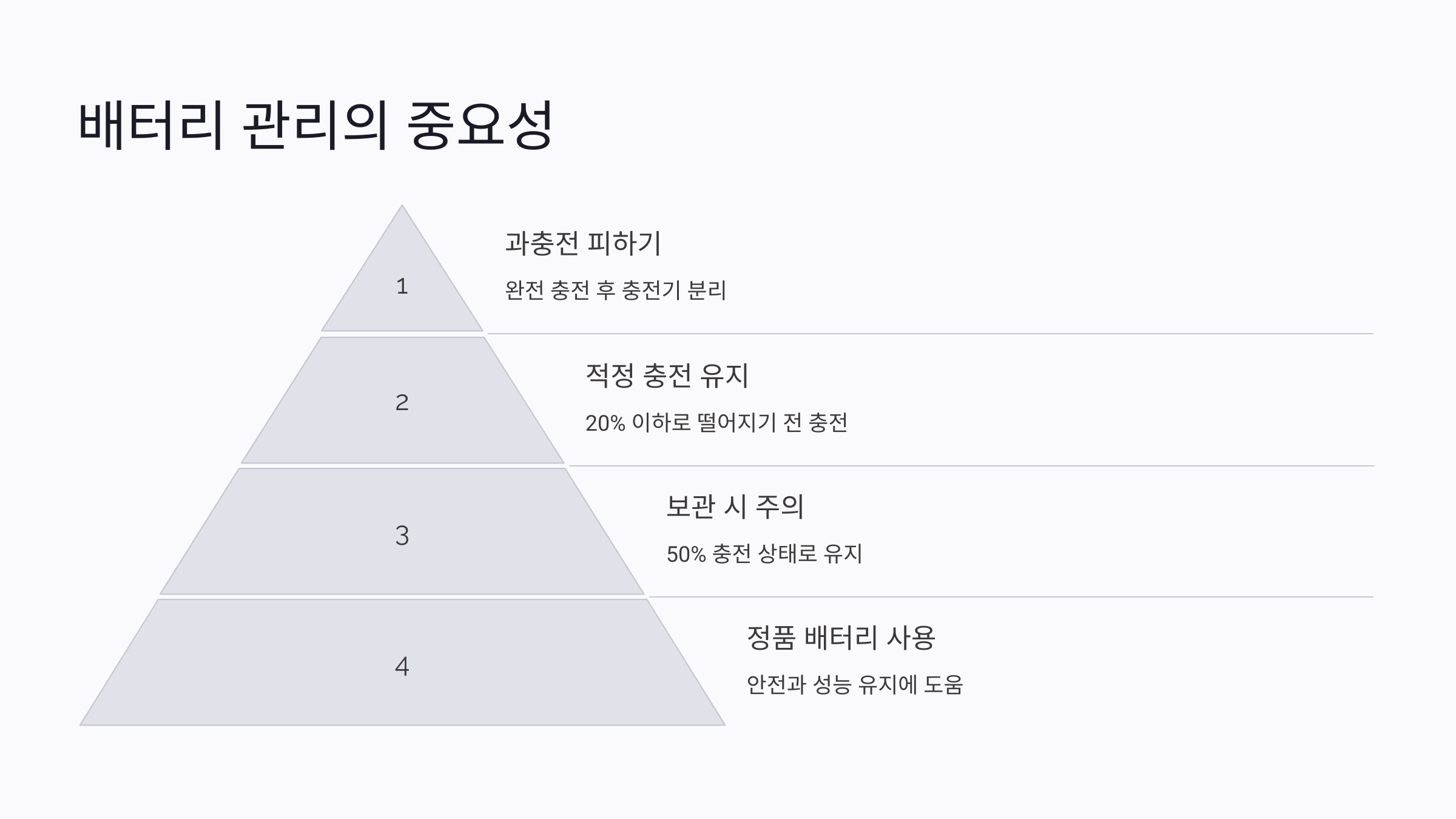 배터리 관리를 위해서는 몇 가지 중요한 점을 기억해야 해요. 첫 번째는 과도한 충전을 피하는 거예요. 배터리가 완전히 충전된 상태에서 계속 충전기를 연결해 두면 배터리 성능이 점차 저하될 수 있어요. 두 번째는 배터리를 완전히 방전시키지 않는 것이 중요해요. 배터리가 20% 이하로 떨어지기 전에 충전하는 것이 좋아요.