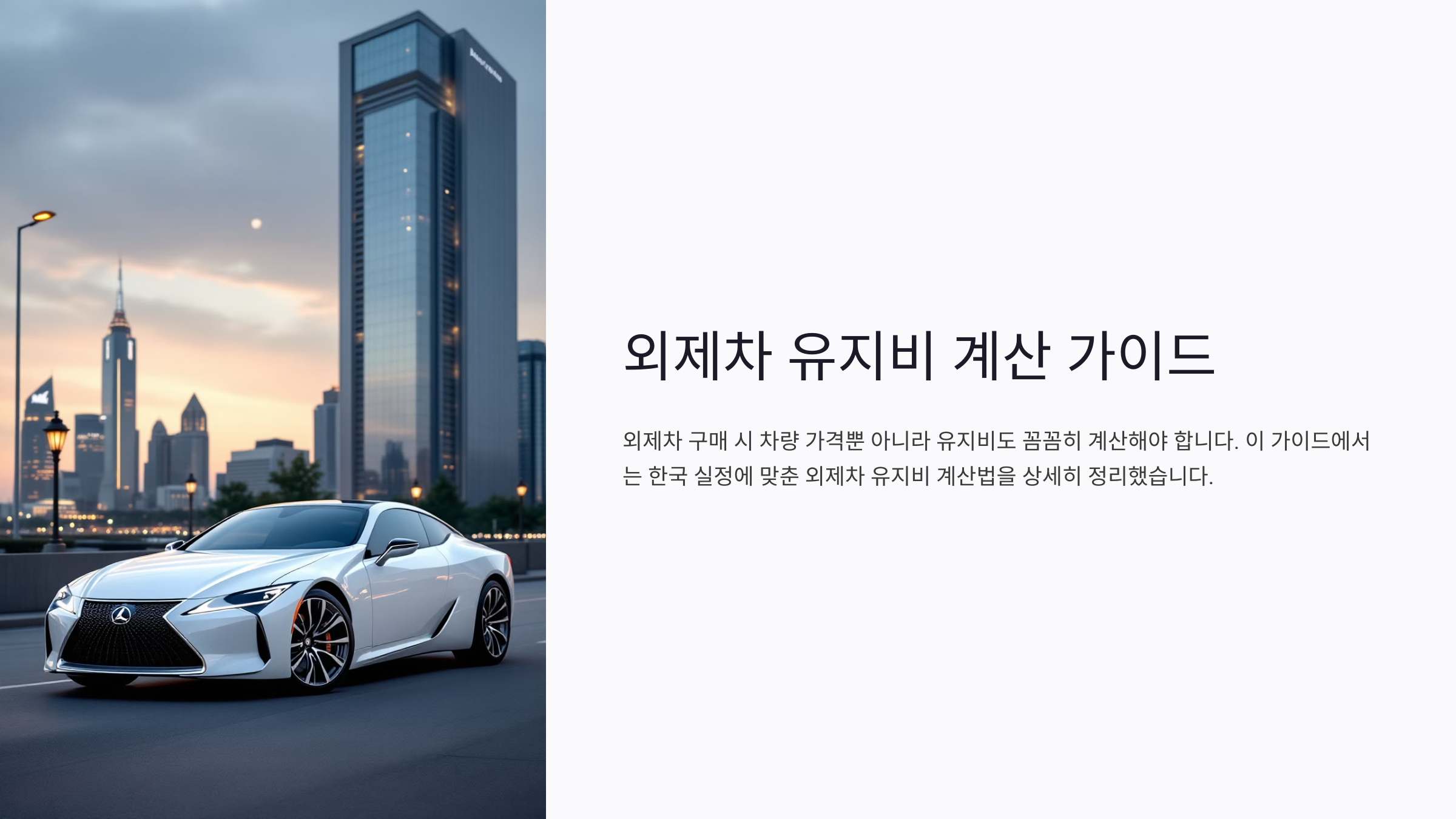 외제차를 구매하면 차량 자체 가격뿐 아니라 유지비도 꼼꼼히 계산해야 해요. 보험료, 연료비, 세금, 정비비 등 다양한 항목에서 추가 비용이 발생하기 때문이에요. 이번 글에서는 한국 실정에 맞춘 외제차 유지비 계산법을 상세히 정리했어요.