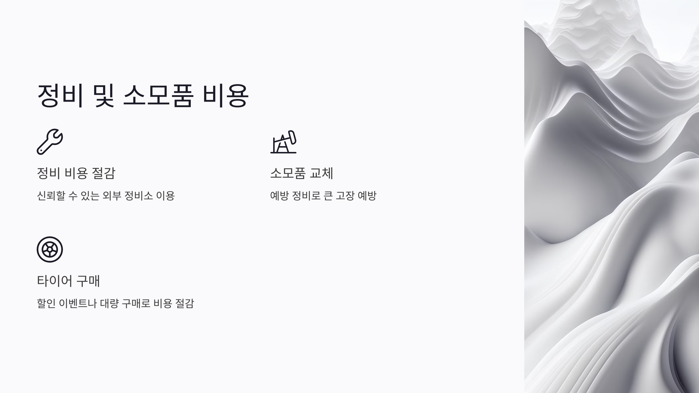 특히, 타이어 같은 소모품은 할인 이벤트를 활용하거나 인터넷에서 대량 구매하면 비용을 크게 줄일 수 있어요. 직접 구매 후 정비소에서 교체를 요청하면 전체 유지비를 더 낮출 수 있답니다.