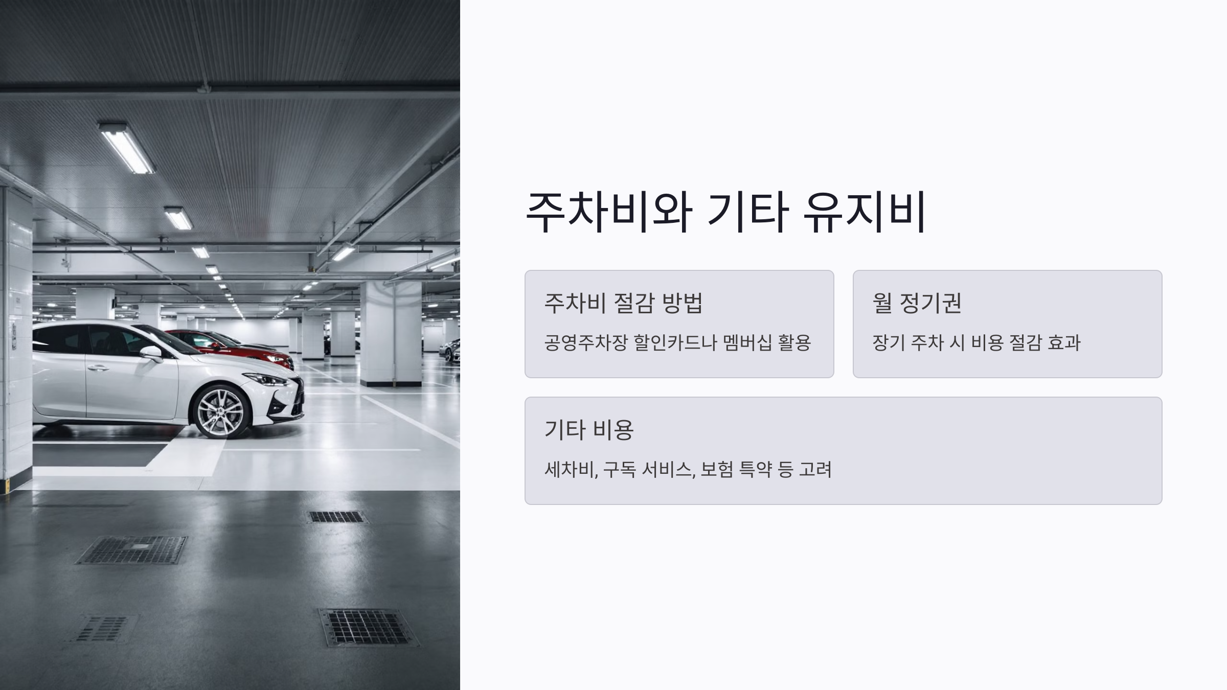 외제차 유지비를 계산할 때 주차비와 기타 부대 비용도 놓칠 수 없는 중요한 항목이에요. 특히 한국에서는 주차 공간이 제한적인 경우가 많아 외제차 소유자들에게 추가적인 비용 부담이 발생하기도 해요. 아파트 주차비, 공영주차장 이용료, 민영주차장 월 정기권 등 다양한 주차 관련 비용을 고려해야 해요.