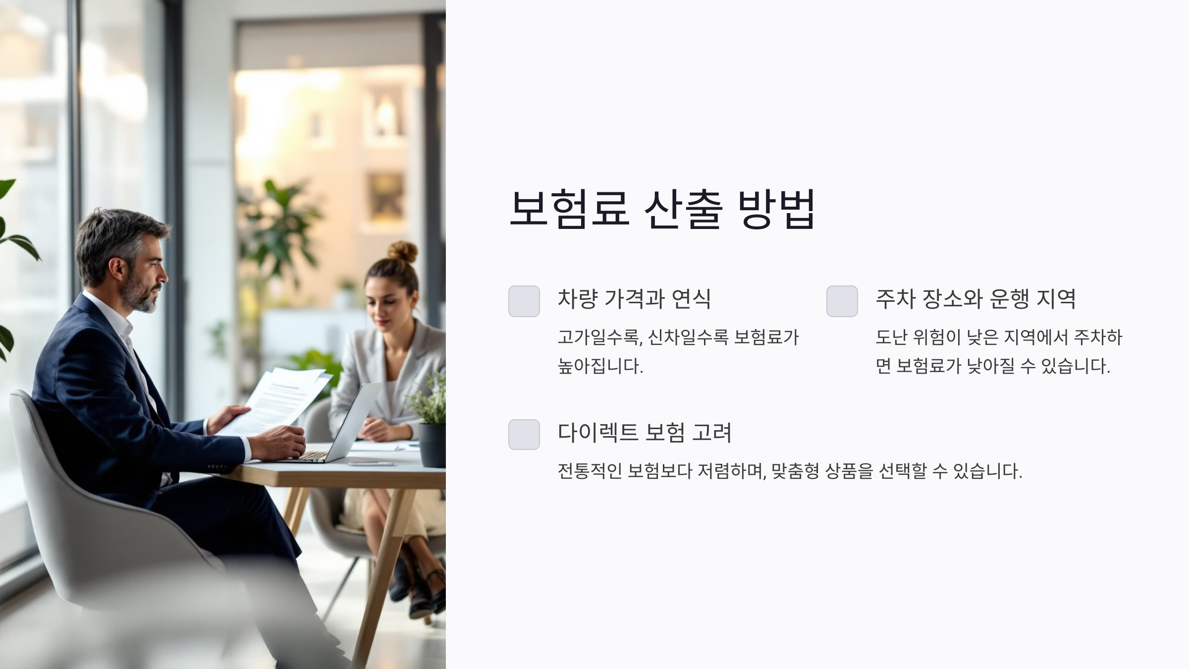 A1. 외제차는 부품비와 수리비가 더 비싸기 때문에 보험사 입장에서 보상 리스크가 높아요. 그래서 보험료도 더 비싸게 책정돼요.