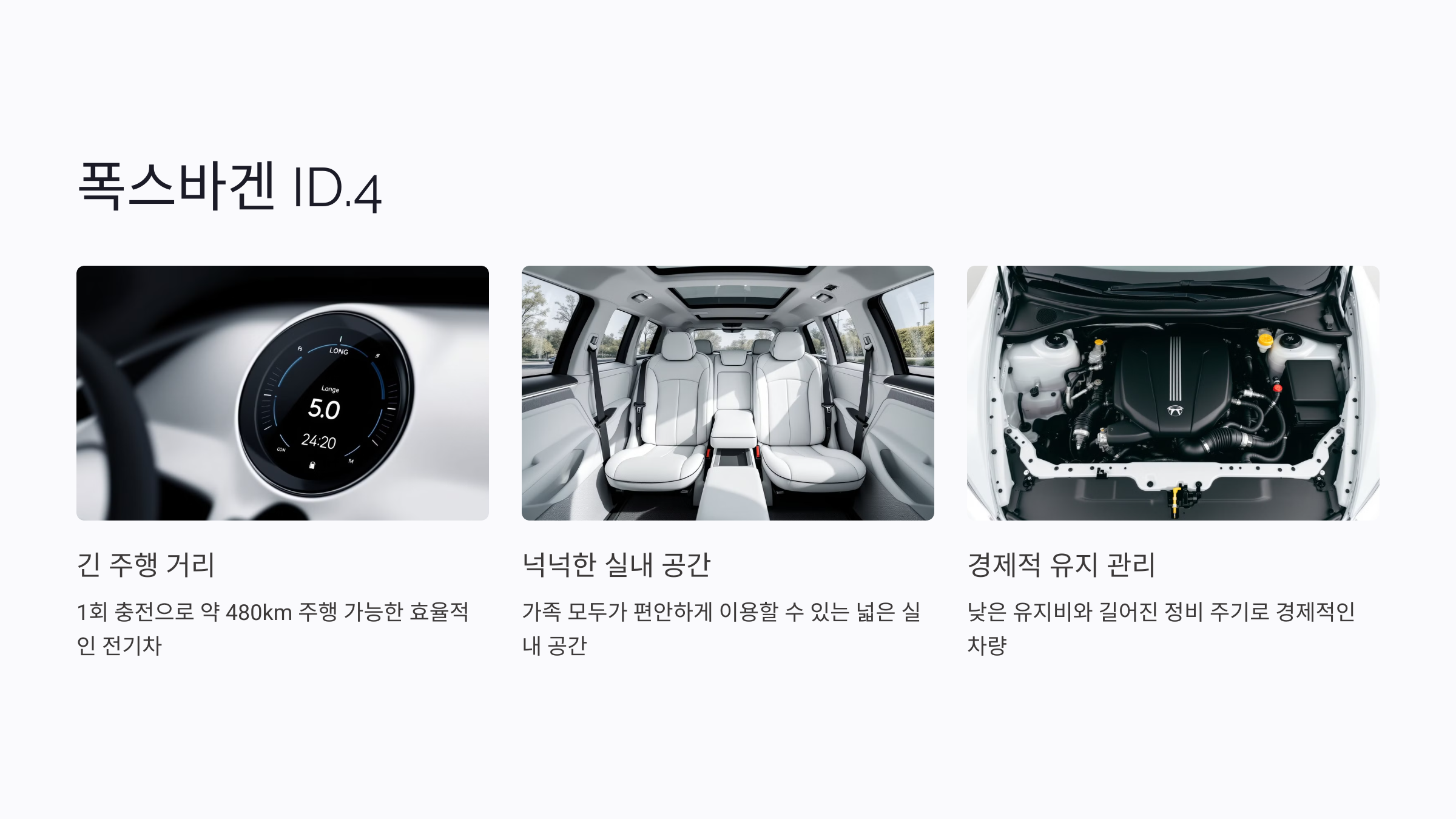 폭스바겐 ID.4는 가족 중심의 전기 SUV로 적합하며, 실내 공간과 주행 효율성을 중시하는 운전자에게 추천돼요.
