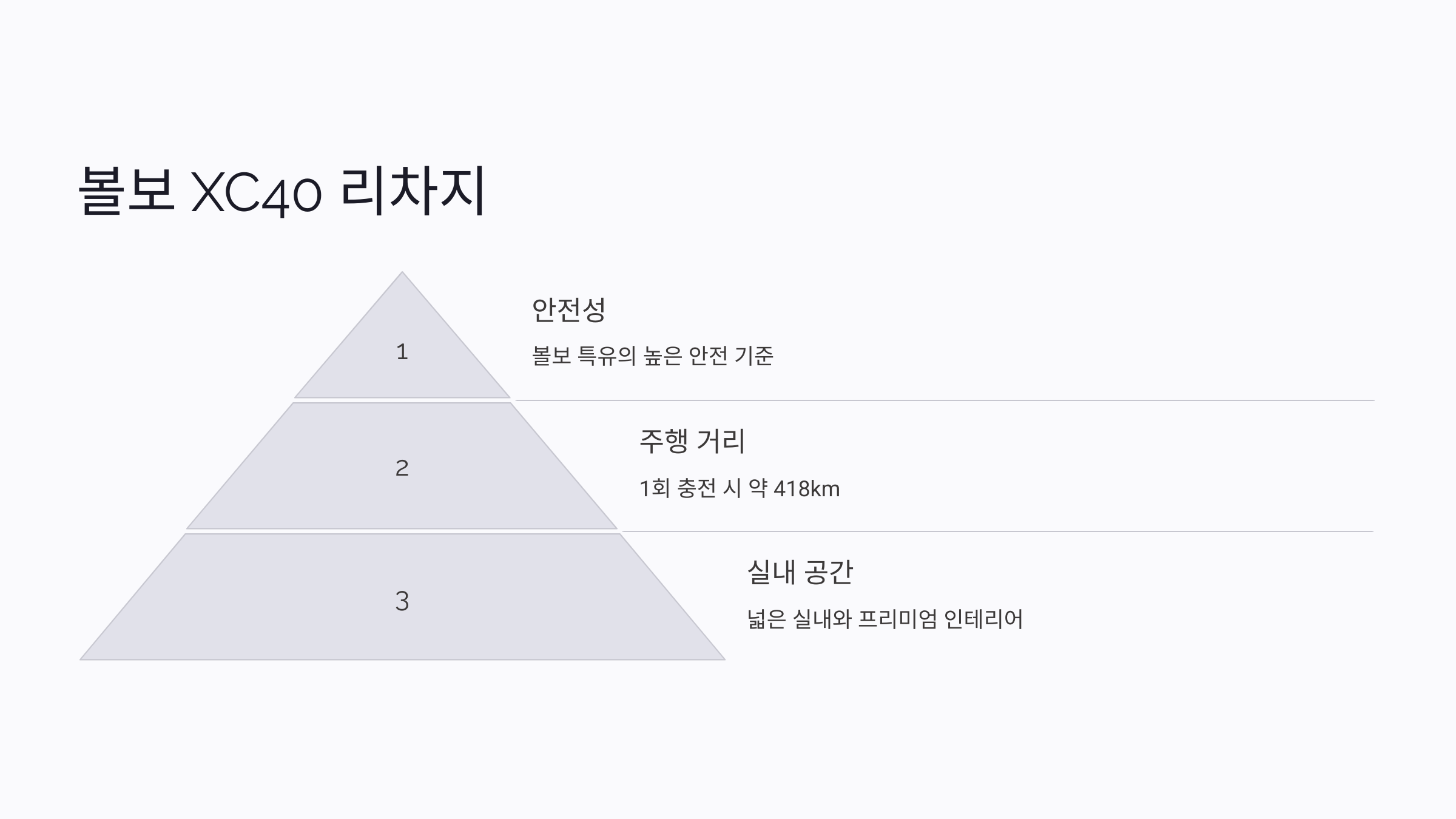 볼보 XC40 리차지는 안전성과 내구성을 중시하는 볼보의 철학이 담긴 전기 SUV 모델이에요. 넉넉한 공간과 강력한 성능을 제공하면서도 유지비는 저렴한 편이에요.