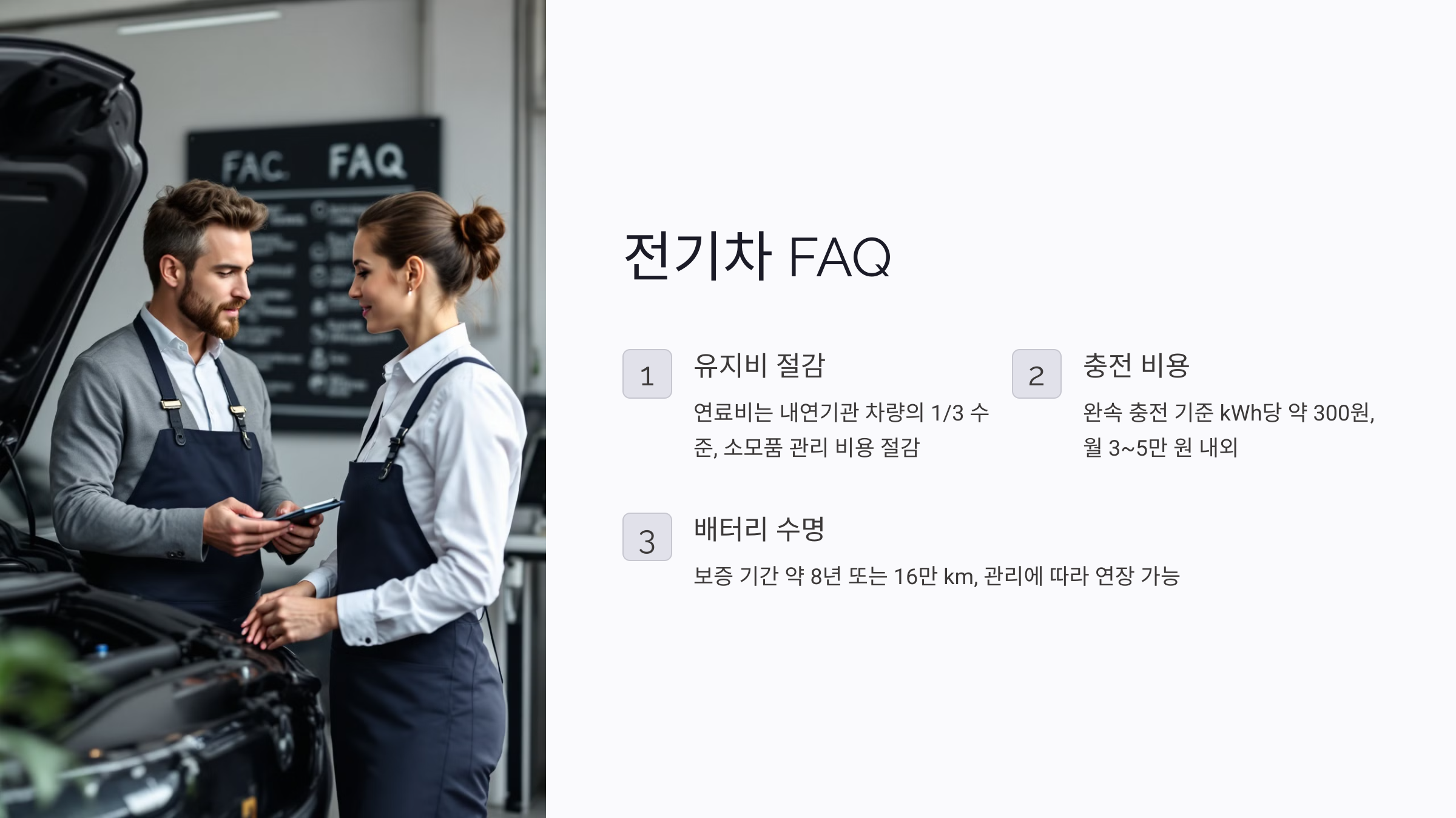 Q1. 전기차 유지비는 내연기관 차량보다 얼마나 저렴한가요?