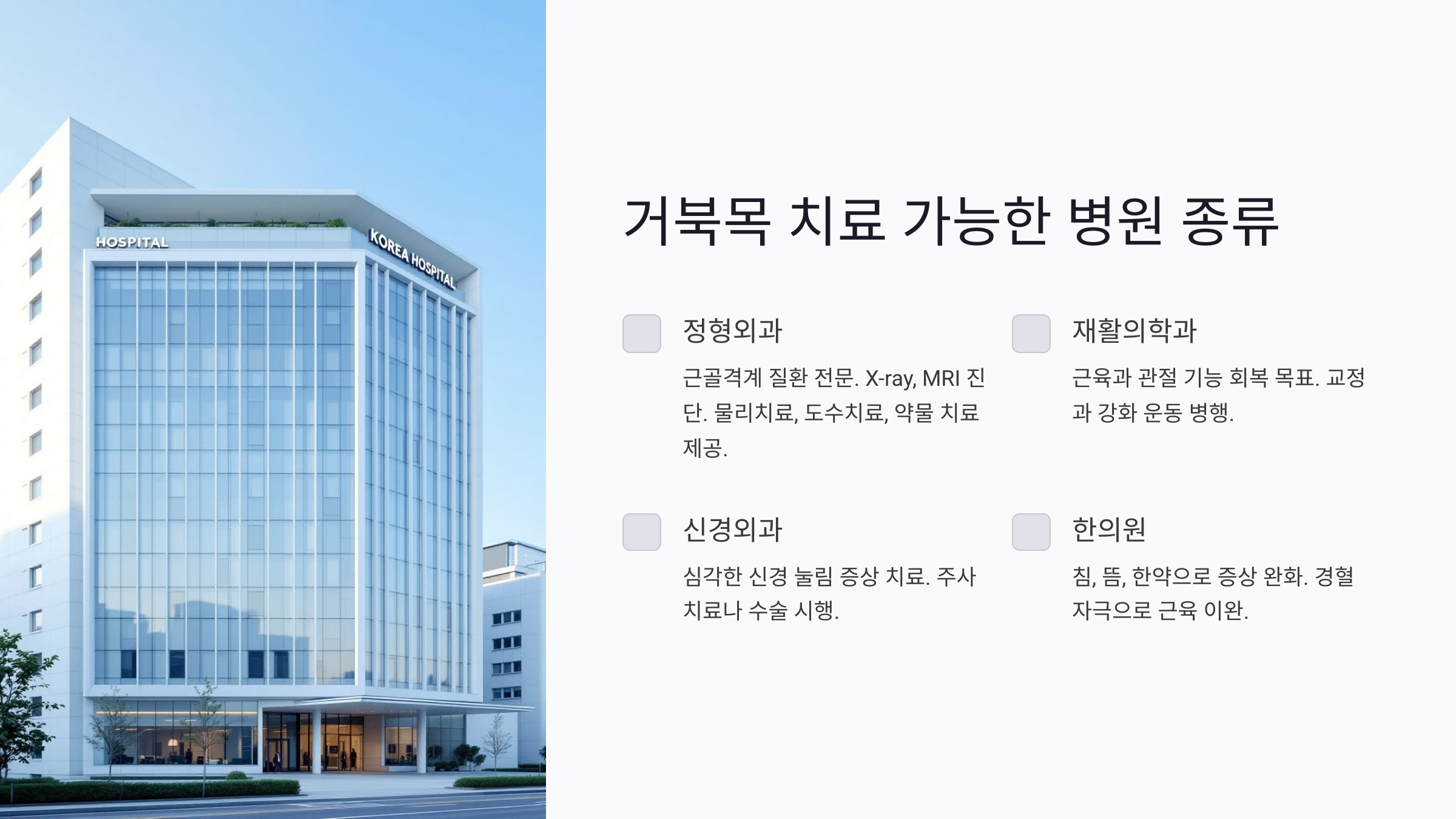 거북목 치료를 위한 병원을 선택할 때는 본인의 증상과 생활 패턴에 맞는 병원을 찾는 것이 중요해요. 아래는 병원 선택 시 고려해야 할 몇 가지 팁이에요.