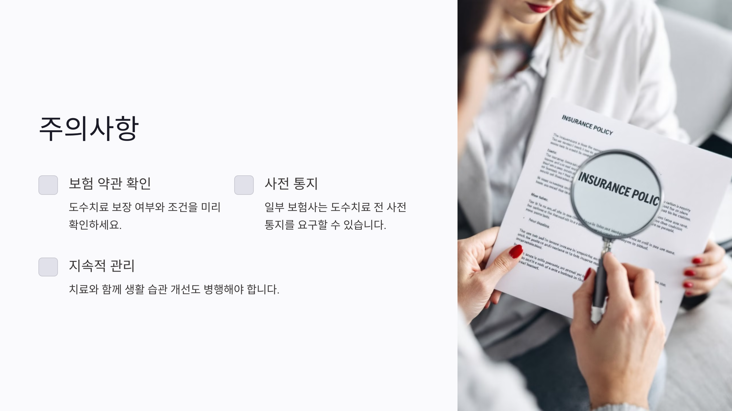 3. 추가 비용 부담: 한도를 초과한 치료비는 본인이 전액 부담해야 하니, 한도 내에서 치료를 받을 수 있도록 계획을 세우는 것이 좋아요.