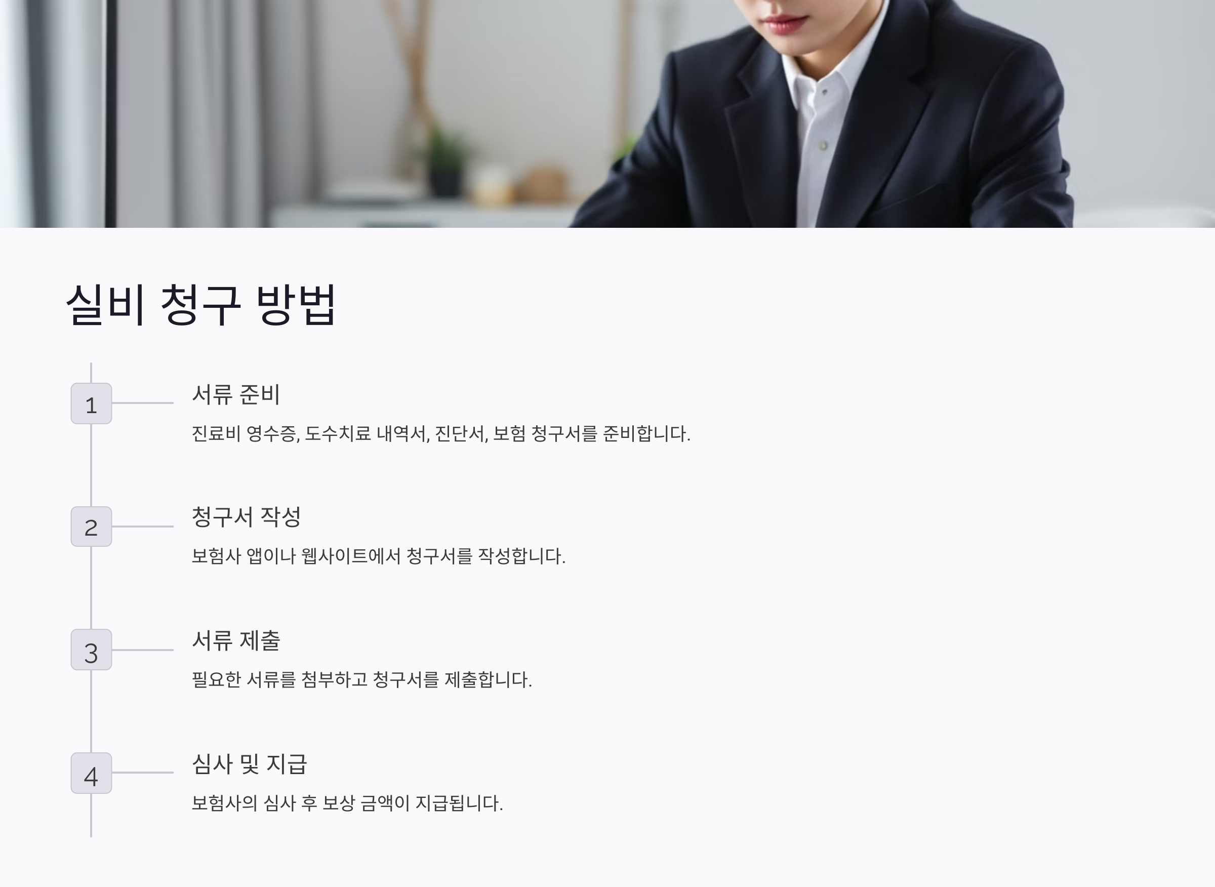 - 자신이 가입한 보험사의 앱이나 웹사이트를 통해 청구서를 작성하세요.