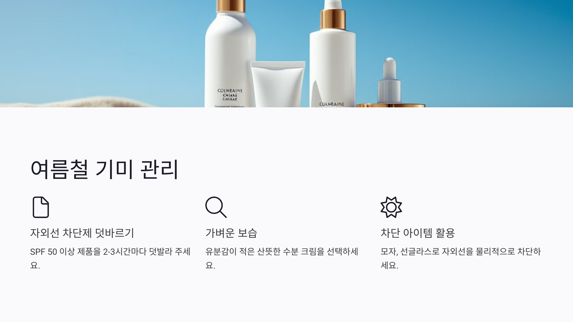 여름철에는 자외선 노출을 줄이는 데 가장 많은 신경을 써야 해요. 또한, 수분 섭취를 늘려 피부 속 수분을 유지하는 것도 중요하답니다.
