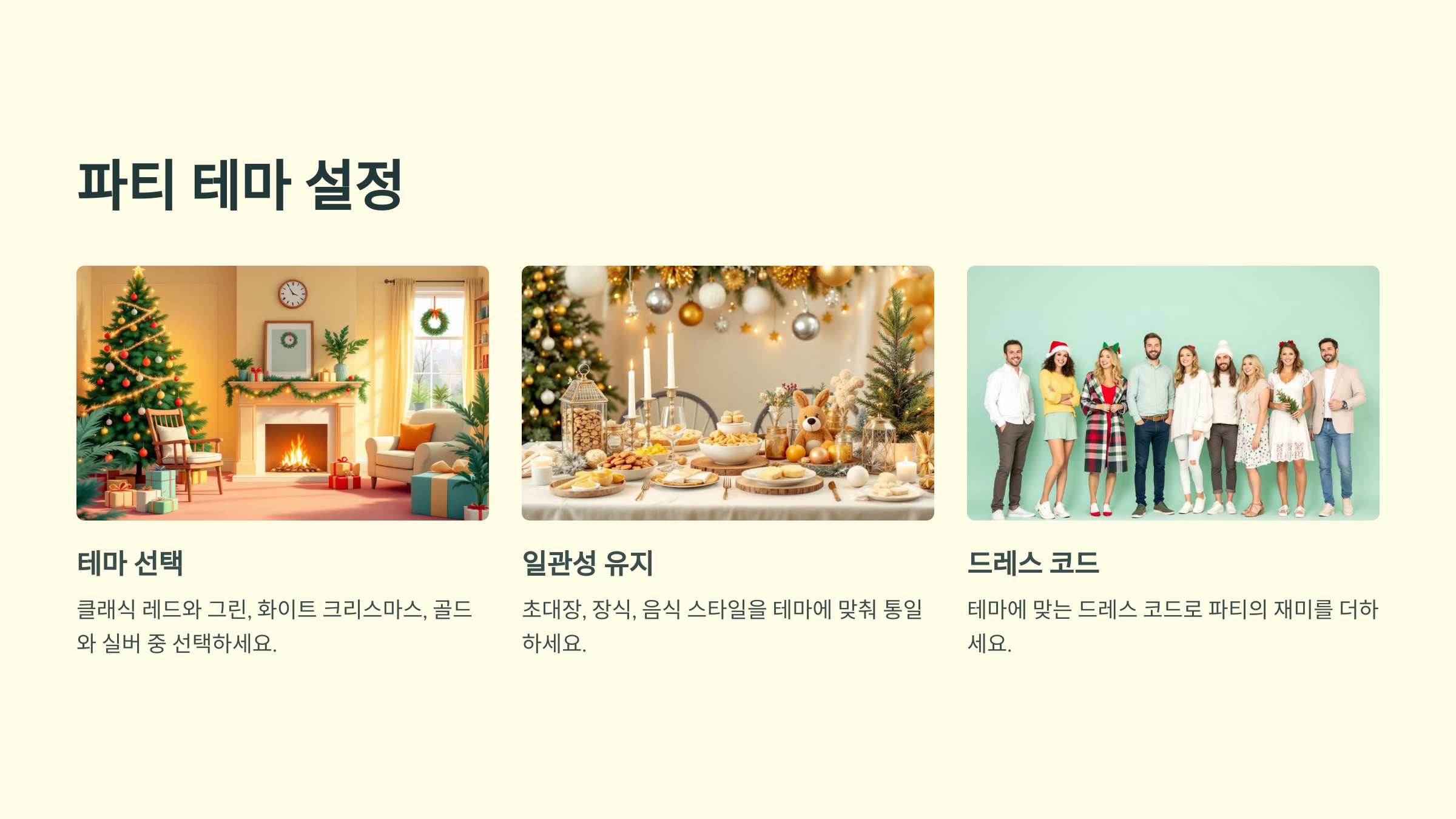 크리스마스 홈파티의 첫 단계는 테마 설정입니다.