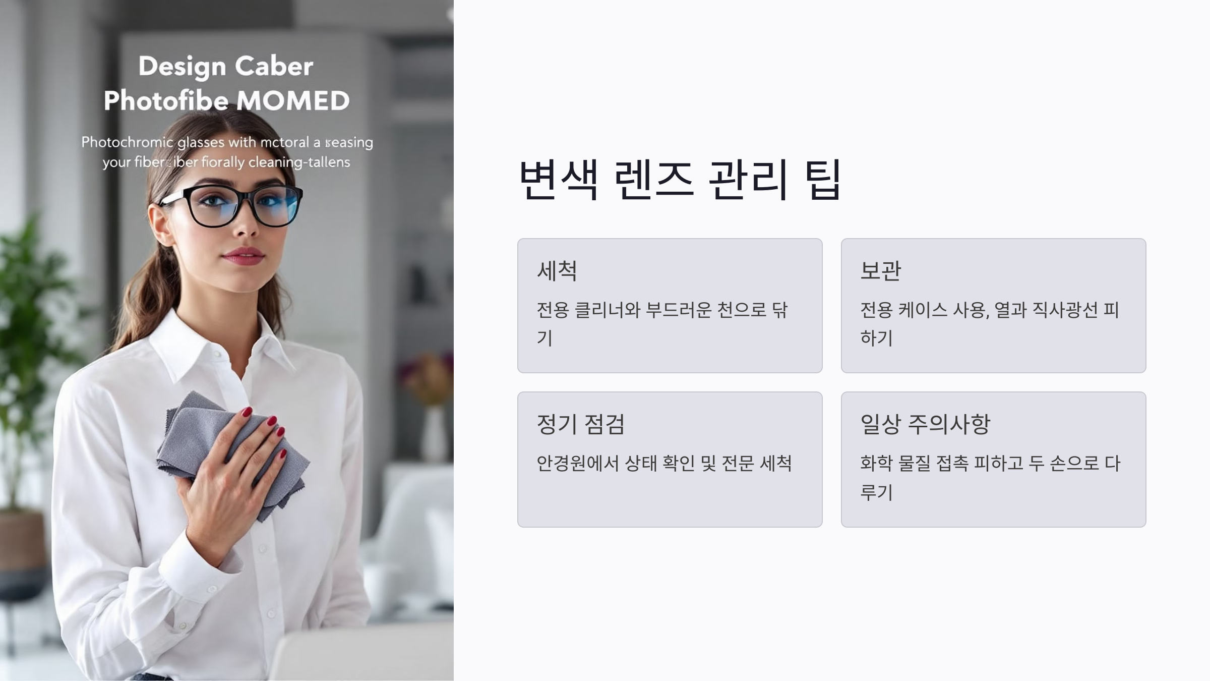 물론, 정기적인 점검도 중요해요. 안경원에서 렌즈 상태를 확인하고, 필요 시 전문 세척 서비스를 받으면 렌즈 성능을 더 오래 유지할 수 있어요. 렌즈에 스크래치가 많아지면 변색 성능이 저하될 수 있으니 정기적으로 확인하세요.