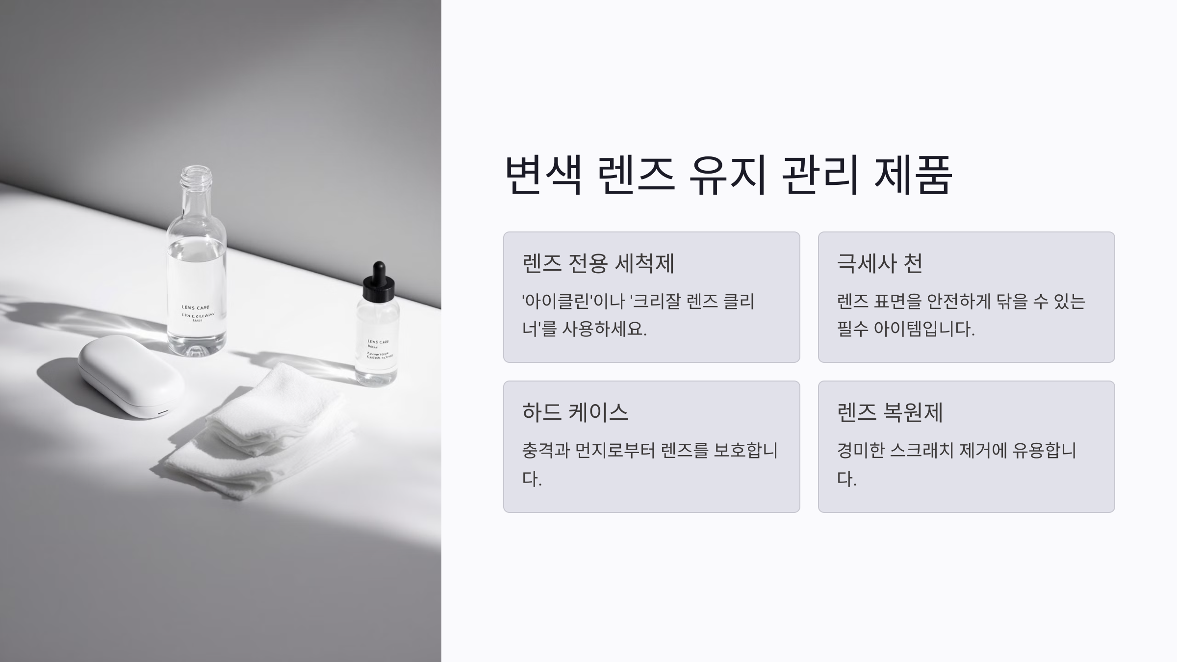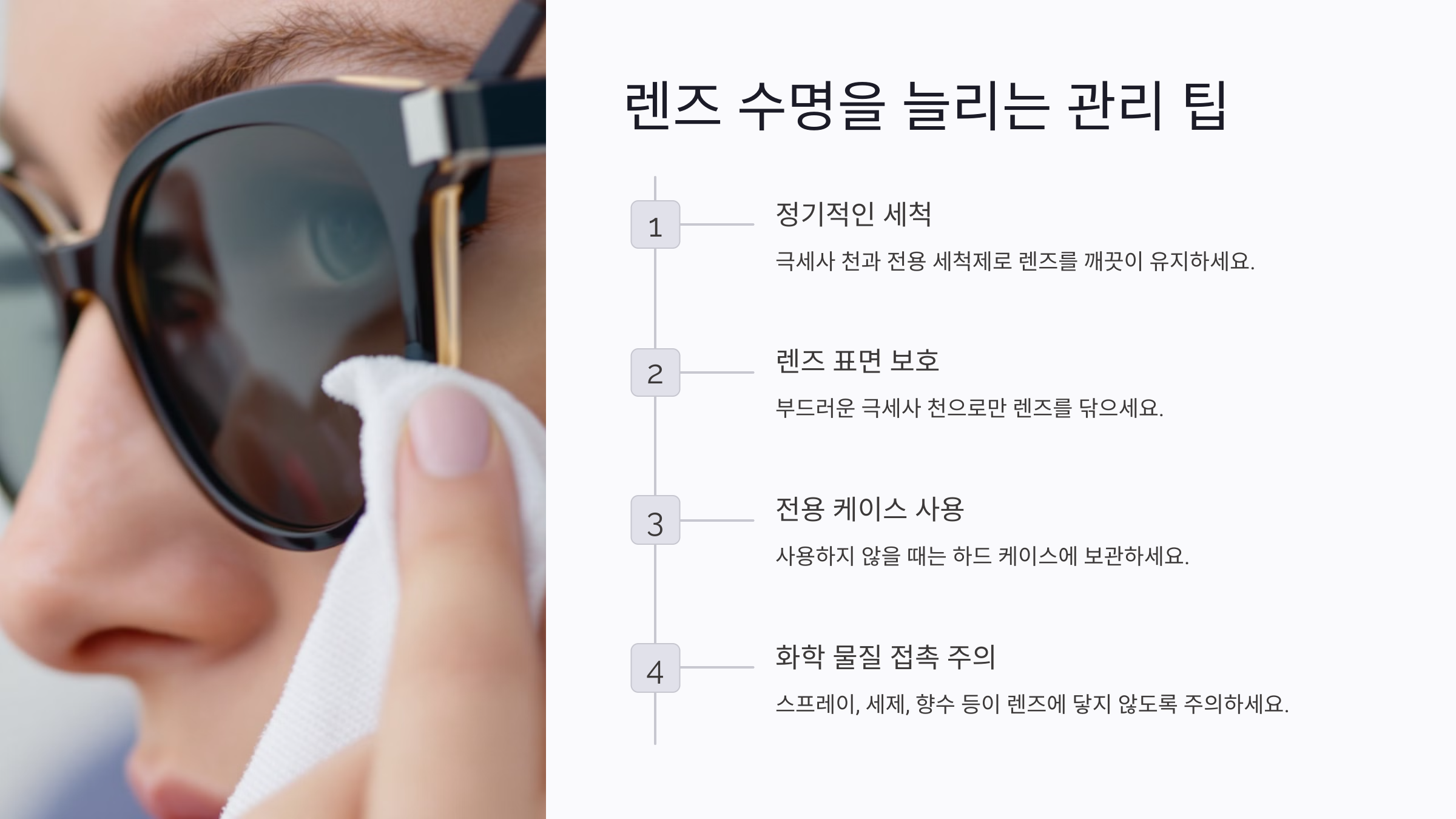 변색 렌즈를 오래 사용하려면 꾸준한 관리가 필요해요. 다음 관리 팁을 참고해보세요: