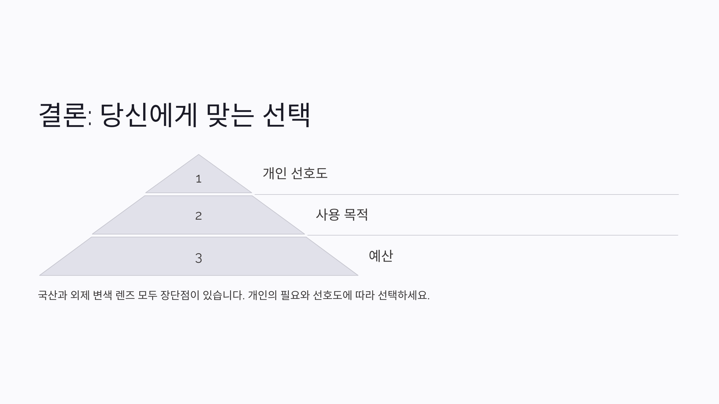 국산과 외제 변색 렌즈 중에서 어떤 제품이 당신에게 적합한지 아래 추천 기준을 확인해보세요: