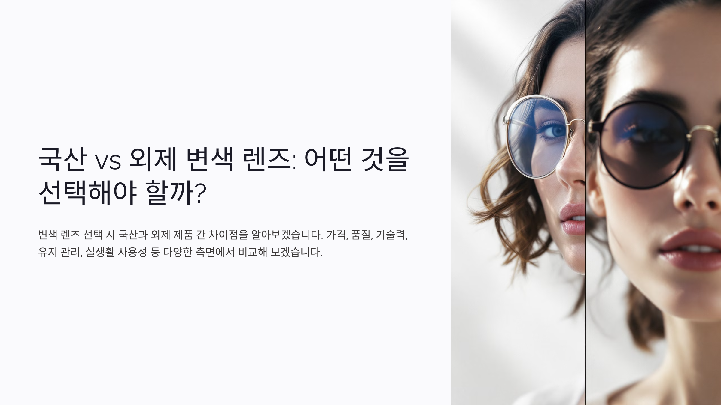 이 글에서는 국산 변색 렌즈와 외제 변색 렌즈를 가격, 품질, 기술력, 유지 관리, 실생활 사용성 등 여러 측면에서 비교하며, 상황에 맞는 렌즈 추천 가이드를 제공할게요.