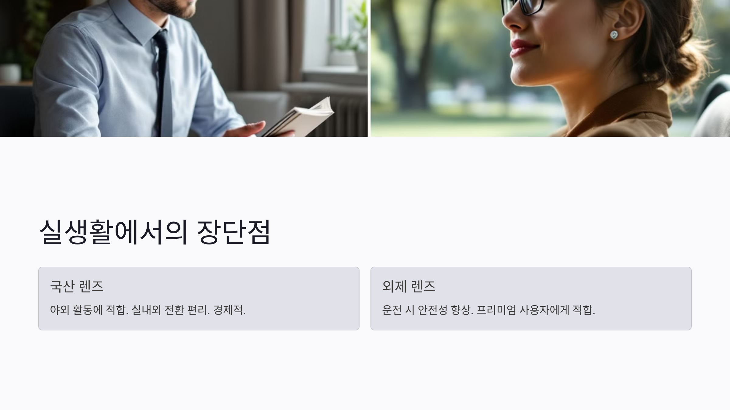 국산 변색 렌즈와 외제 렌즈는 실생활에서 각각 다른 방식으로 장단점을 보여요. 주요 사례를 살펴볼게요: