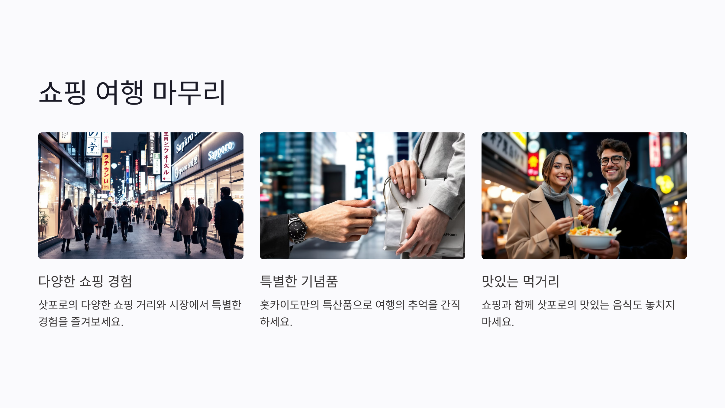 삿포로는 맛있는 음식과 멋진 명소뿐만 아니라, 쇼핑하기에도 환상적인 도시로 손꼽혀요. 일본 북부의 매력을 담은 특산품, 세련된 패션 아이템, 그리고 독특한 기념품까지, 삿포로에서는 원하는 모든 것을 쇼핑할 수 있어요. 이번 글에서는 삿포로에서 쇼핑할 때 놓쳐선 안 될 명소와 아이템들을 소개해 드릴게요!