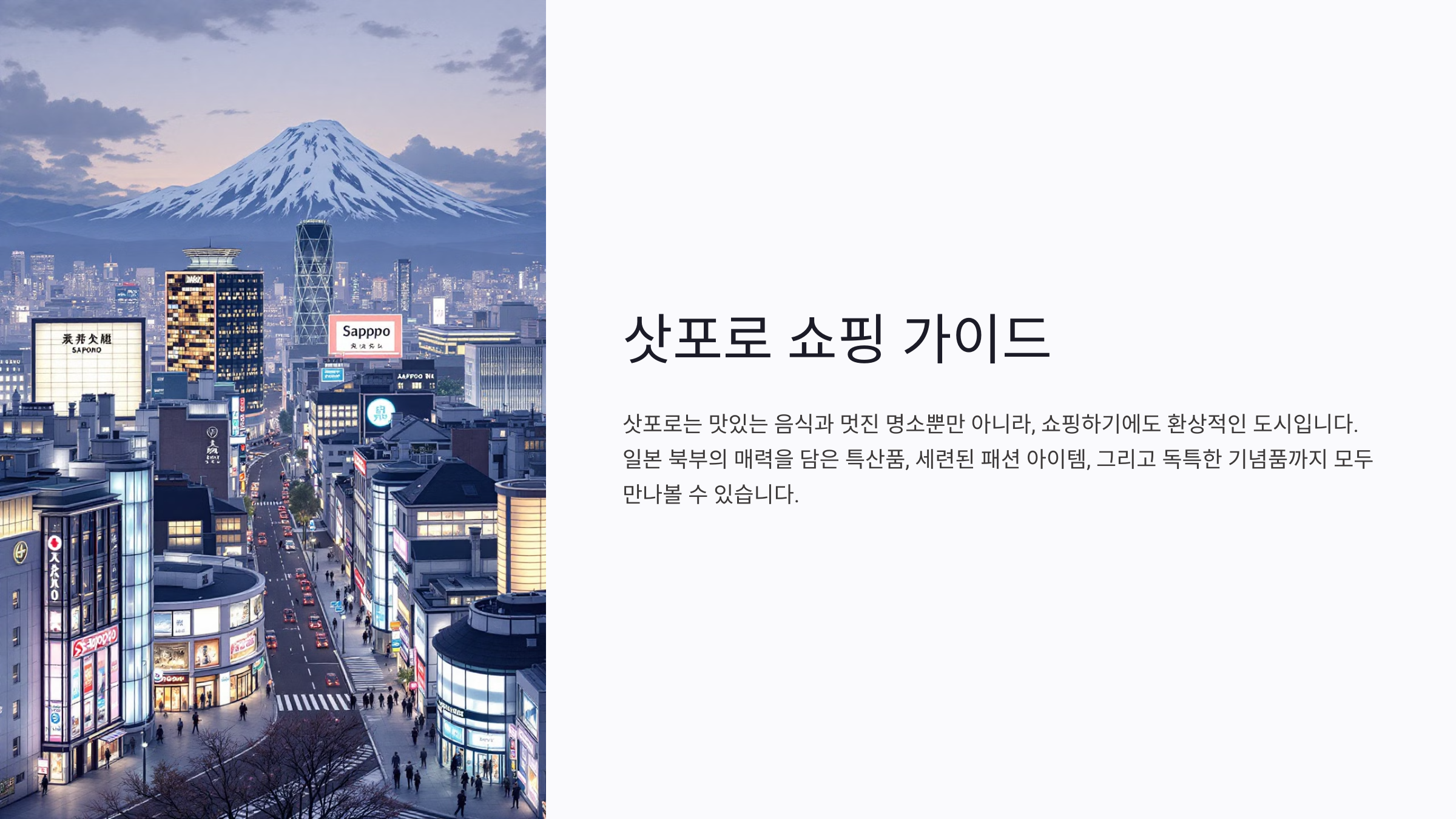삿포로의 주요 쇼핑 거리, 전통 시장, 기념품 추천, 할인 꿀팁까지 다양한 정보를 확인하고 알뜰하고 똑똑한 쇼핑을 즐겨보세요!
