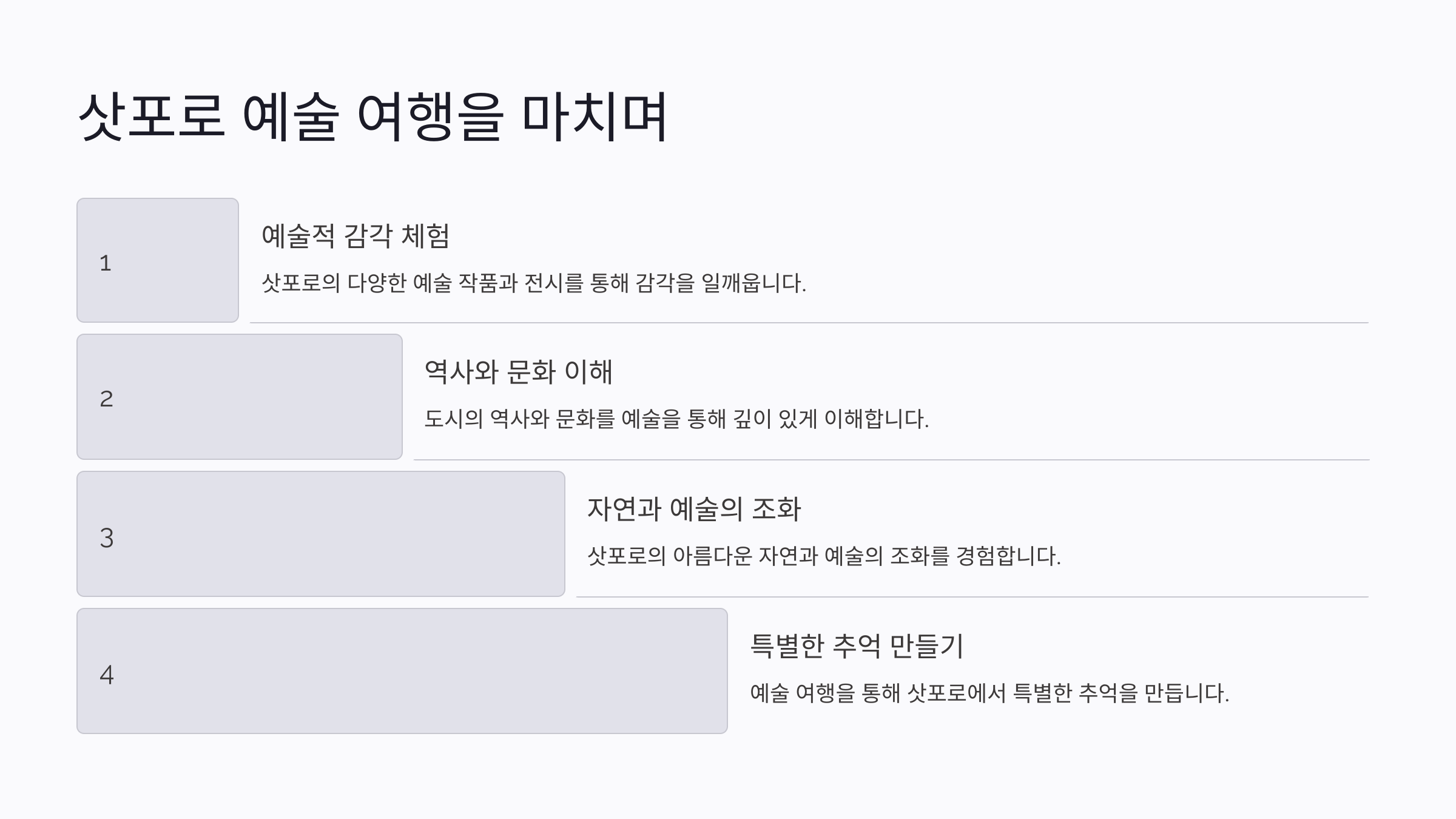 가이드 투어는 삿포로의 예술과 문화를 보다 풍성하게 경험할 수 있는 좋은 방법이에요. 사전 예약으로 투어를 준비하고, 전문가와 함께 예술 여행을 떠나보세요!