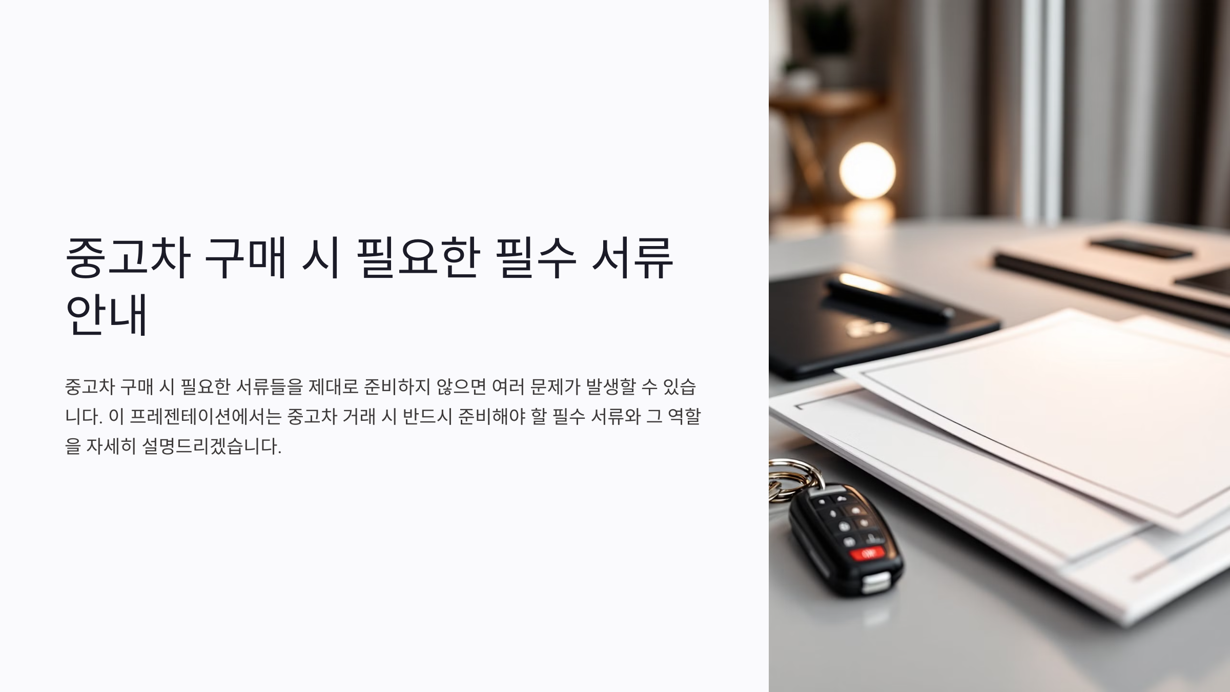 중고차를 구매할 때 필요한 서류들을 제대로 준비하지 않으면 소유권 이전, 보험 가입, 차량 운행 등에서 문제가 발생할 수 있어요. 중고차 거래는 서류와 관련된 절차가 까다롭기 때문에 사전에 정확히 알아두는 것이 중요해요. 이번 글에서는 중고차 거래 시 반드시 준비해야 할 필수 서류와 그 역할을 자세히 설명할게요.