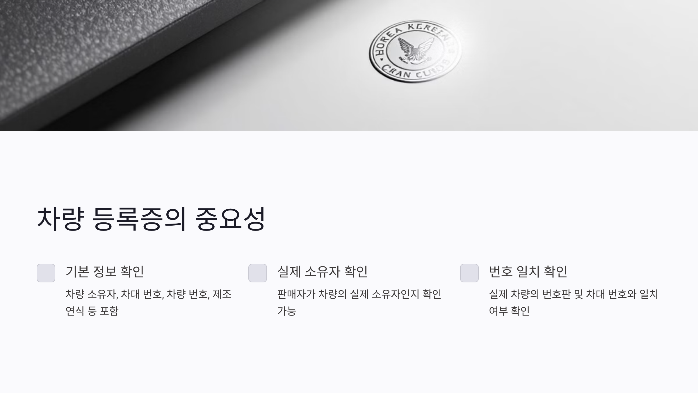 차량 등록증은 중고차 거래에서 가장 중요한 서류 중 하나예요. 차량 등록증은 차량의 기본적인 정보를 확인할 수 있는 공식 문서로, 차량 소유자, 차대 번호, 차량 번호, 제조 연식 등이 포함되어 있어요. 구매자는 차량 등록증을 통해 판매자가 차량의 실제 소유자인지 확인해야 해요.