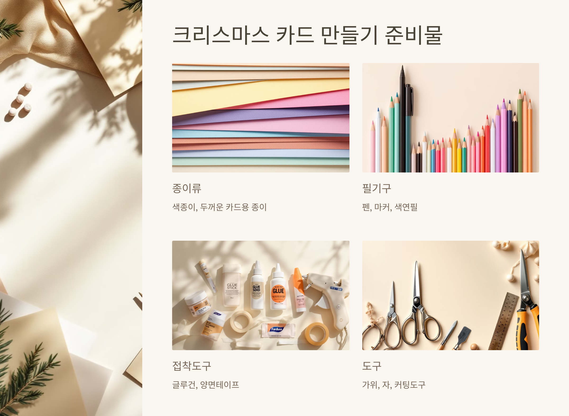 크리스마스 카드를 만들기 위해 간단한 준비물이 필요합니다.